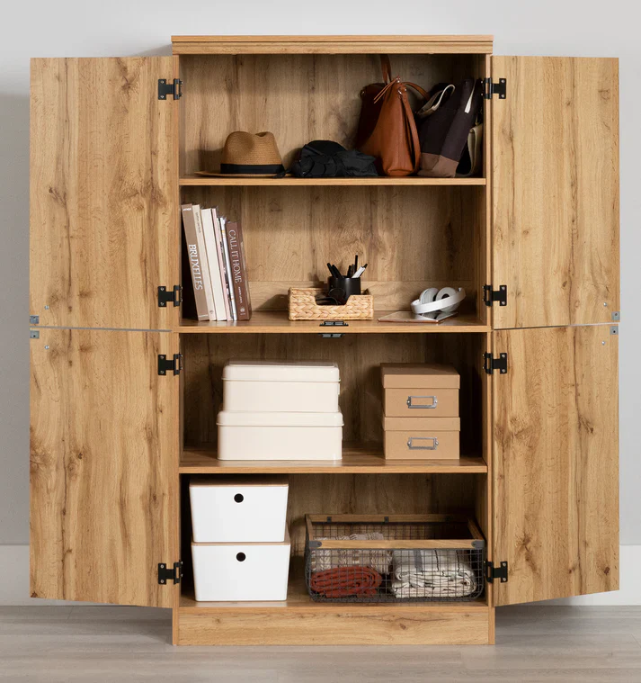 Devenez encore plus organisé au quotidien grâce à cette superbe armoire de rangement! Ses quatre portes cachent deux tablettes réglables et une tablette fixe afin de vous permettre de ranger plusieurs de vos effets personnels : les vêtements d’hiver, les jeux de société, la literie, etc. Comme elle est faite en hauteur, elle n’occupe par beaucoup de superficie de plancher dans votre pièce, ce qui en fait un idéal pour les petits espaces. C’est un incontournable !