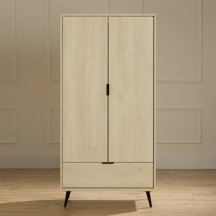 Armoire penderie avec portes et tiroir Oxford – Chêne blanchi