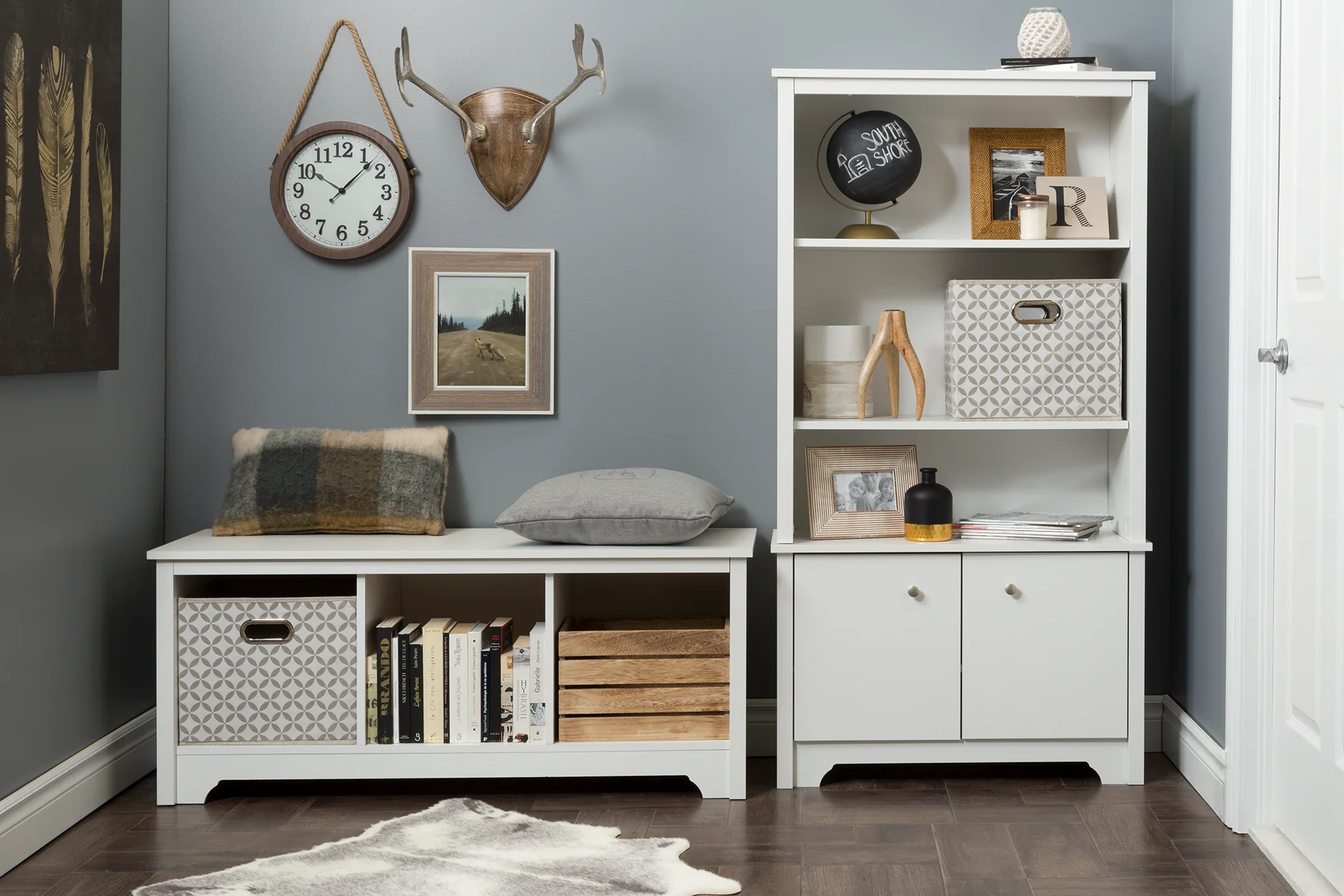 Les trois espaces de rangement ouverts sous le banc sont spécifiques pour des paniers, des chaussures ou des sacs d’épicerie. Bref, tout ce dont vous avez besoin à portée de main lorsque vous sortez de chez vous en vitesse. Vous pourriez également mettre des coussins et une couverture sur le dessus pour plus de confort. Quel bonheur d’arriver dans une maison chaude et bien ordonnée !