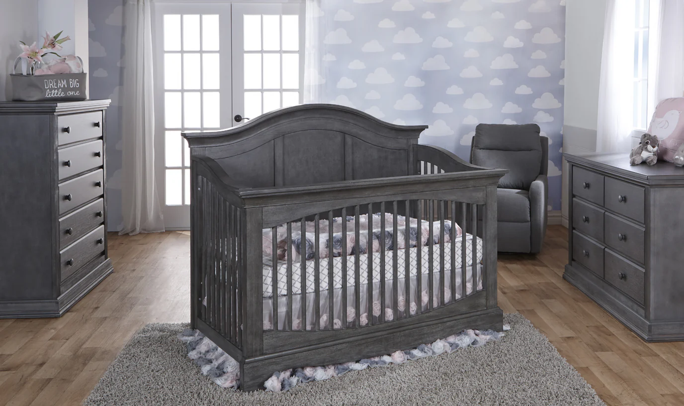 Le berceau Enna Forever est un berceau 4 en 1 : il se transforme en lit pour tout-petit, en lit de repos puis en lit double. C’est une pièce élégante qui se coordonne parfaitement avec les collections Ragusa et Modena. Avec des moulures incurvées et des chevilles arrondies complétées par des accents verticaux sur la tête de lit, le lit de bébé est un charmant mélange de design fantaisiste et classique. Fabriqué à partir de bois dur sélectionné et durable.