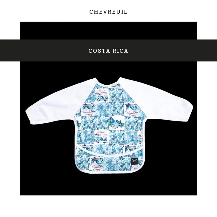 Parce que l’heure du repas est un moment unique à partager avec son enfant…Partagez ce moment sans tracas avec la bavette à manches Chevreuil qui permettra à votre petit toutes les découvertes culinaires que vous lui offrez.
