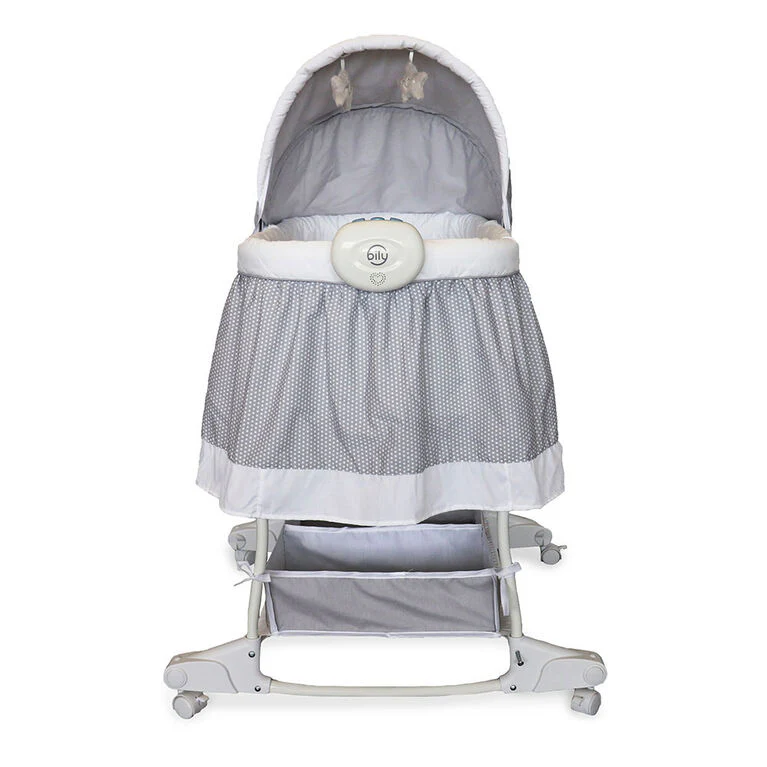 Avec son balancement latéral apaisant, le berceau de Bily aide bébé à s’endormir et à se sentir en sécurité. Ce petit lit est parfait durant les premiers mois, lorsque le sommeil du nouveau-né est entrecoupé de courtes périodes de réveil. Une veilleuse apaisante, une capote réglable ainsi qu’un module à musique et à vibrations complètent l’ensemble pour créer un environnement des plus paisibles.