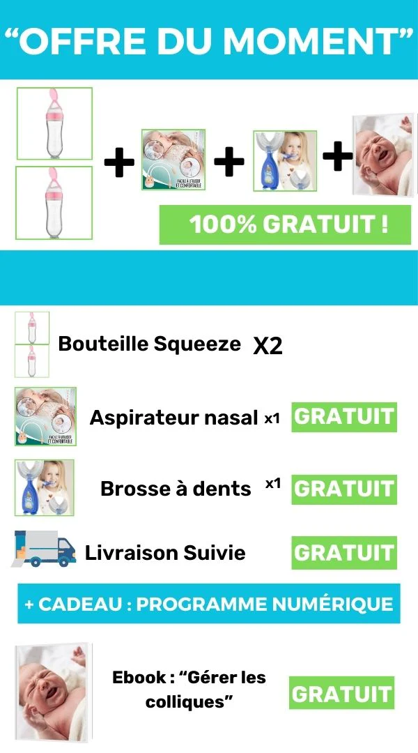 ✅ Nourrir bébé facilement EasyBottle™ est la solution parfaite pour nourrir bébé avec du lait, du lait maternisé, des premières purées ou des céréales. Plus besoin de bol ni d’ustensile pour donner le repas à bébé.