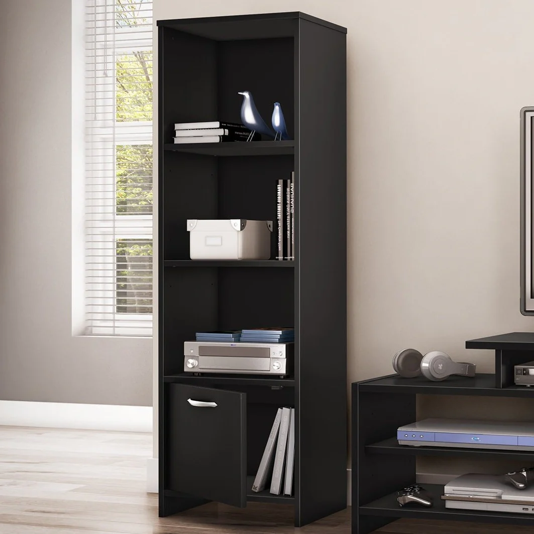 Bibliothèque 3 tablettes avec porte Step One – Noir solide