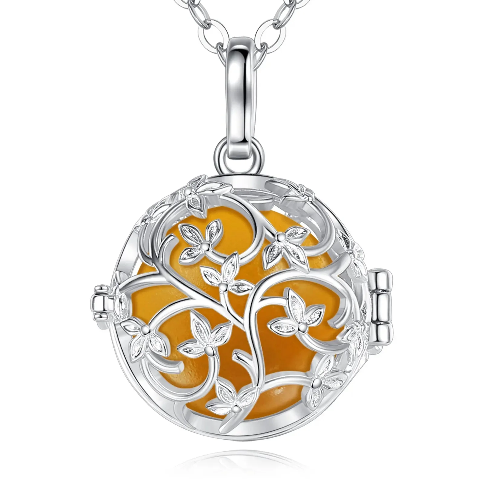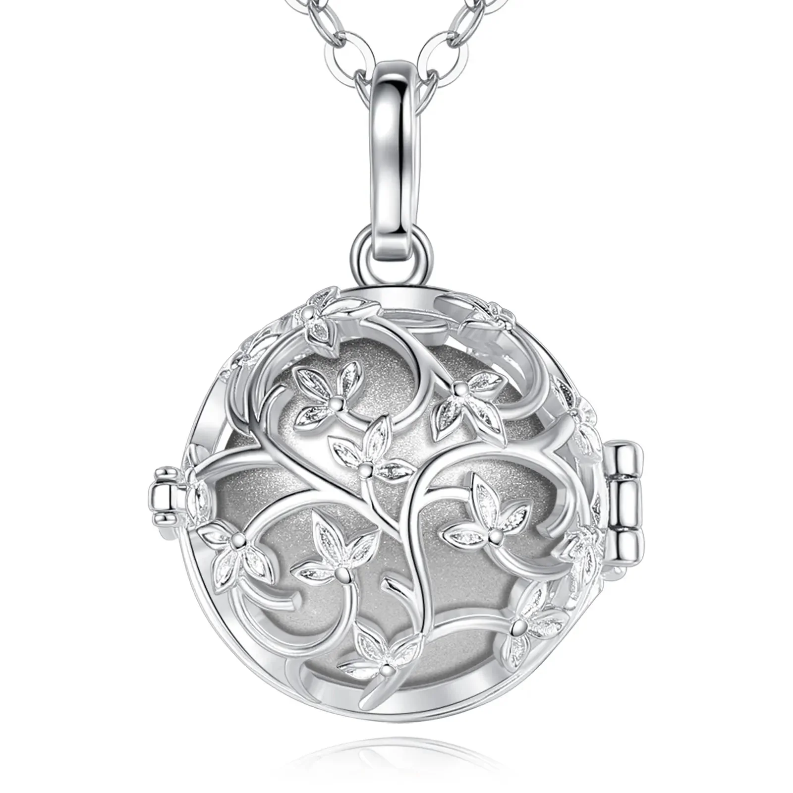 Notre bola à cage avec des branches et feuilles est un bijou unique et élégant, qui apportera une touche de douceur et de raffinement à votre tenue. Il est composé d’une cage sphérique en métal, qui s’ouvre en deux parties pour accueillir le bola. Chaque bola est fabriqué avec soin et émet un doux tintement apaisant, qui berce le bébé et favorise son développement sensoriel pendant la grossesse. Le bola à cage avec des branches et feuilles est orné de branches et de feuilles en relief, pour une touche de féminité et de raffinement. Il a un diamètre de 18 mm et est disponible avec une chaîne en argent de 114 cm, pour s’adapter à toutes les morphologies.