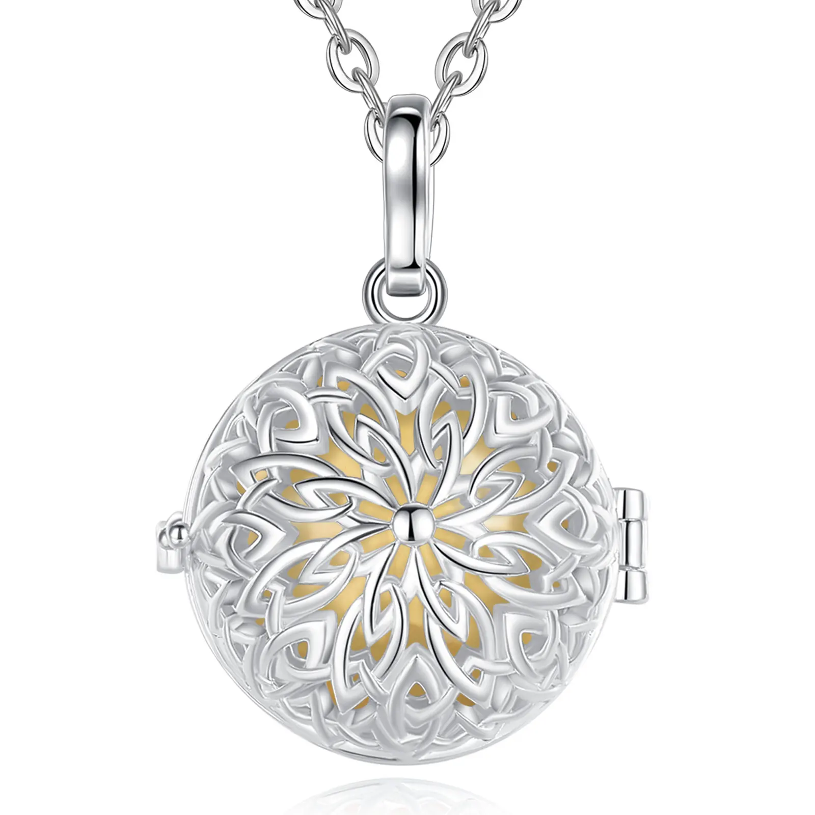 Notre bola à cage est un bijou unique et élégant, qui apportera une touche de douceur et de raffinement à votre tenue. Il est composé d’une cage en métal, qui s’ouvre en deux parties pour accueillir le bola. Chaque bola est fabriqué avec soin et émet un doux tintement apaisant, qui berce le bébé et favorise son développement sensoriel pendant la grossesse. Le bola à cage est disponible en plusieurs couleurs et matières, pour s’adapter à tous les goûts et tous les styles. Il est disponible avec une chaîne en argent de 114 cm