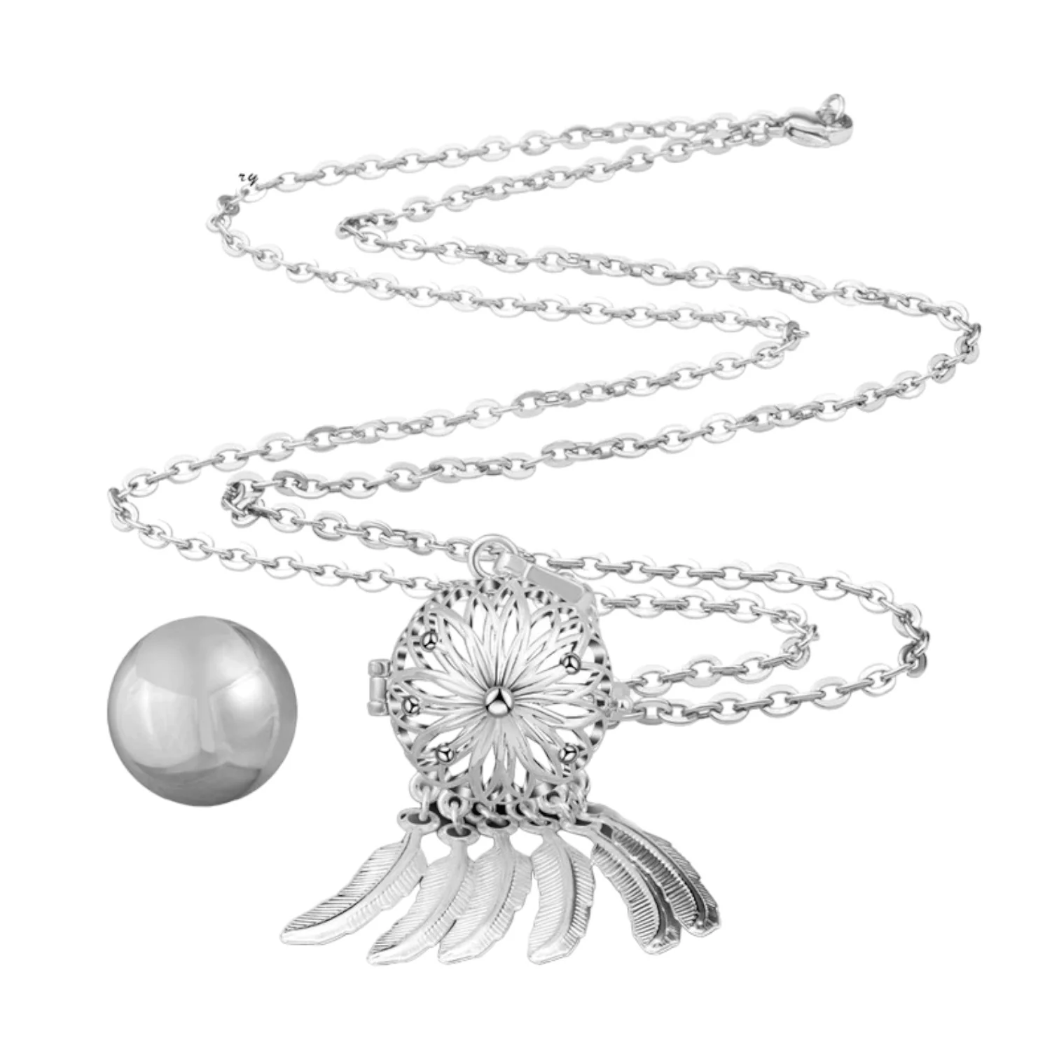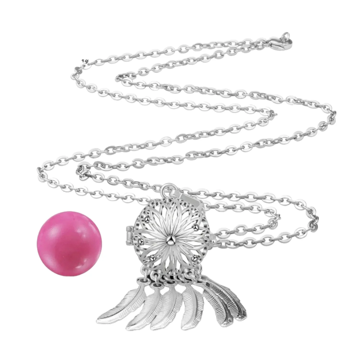 Notre bola à cage est un bijou unique et élégant, qui apportera une touche de douceur et de raffinement à votre tenue. Il est composé d’une cage en métal, qui s’ouvre en deux parties pour accueillir le bola. Chaque bola est fabriqué avec soin et émet un doux tintement apaisant, qui berce le bébé et favorise son développement sensoriel pendant la grossesse. Le bola à cage est disponible en plusieurs couleurs et matières, pour s’adapter à tous les goûts et tous les styles. Il est disponible avec une chaîne en argent de 114 cm