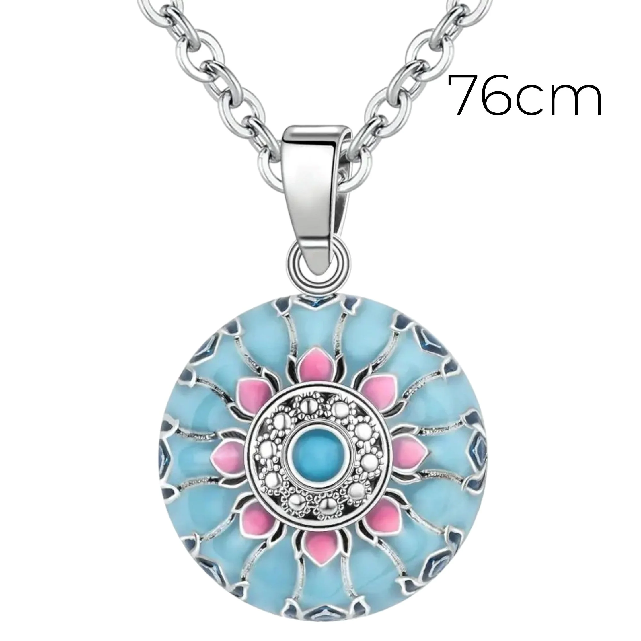 Notre bola lotus bleu est un bijou unique et élégant, qui apportera une touche de douceur et de sérénité à votre tenue. Il est composé d’une fleur de lotus en métal bleu, qui s’ouvre en deux parties pour accueillir le bola. Chaque bola est fabriqué avec soin et émet un doux tintement apaisant, qui berce le bébé et favorise son développement sensoriel pendant la grossesse. Le bola lotus bleu est disponible avec une chaîne en argent de 2 longueurs au choix (76 cm ou 114 cm), pour s’adapter à toutes les morphologies.
