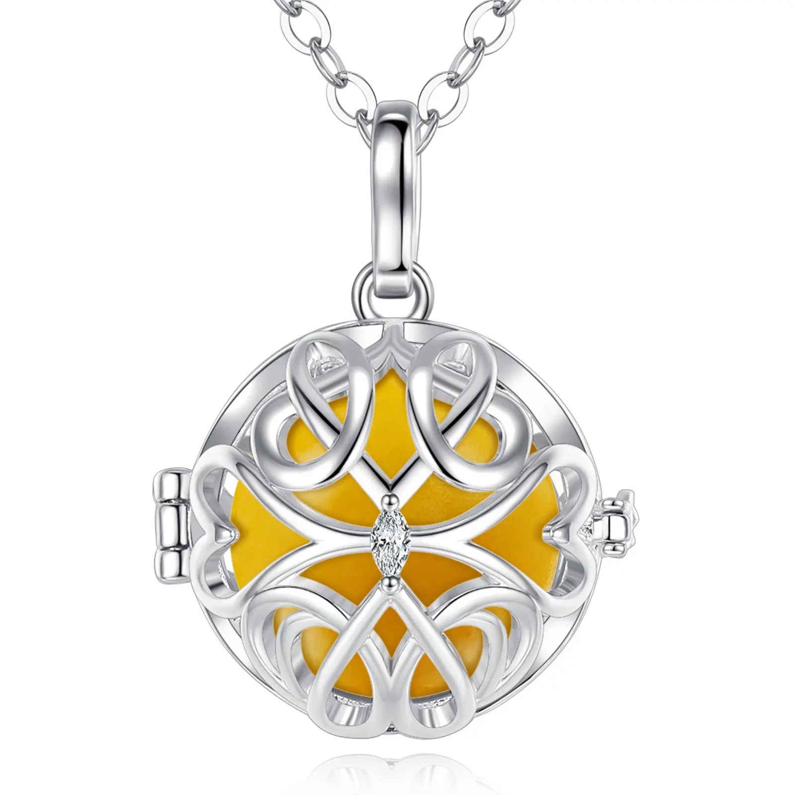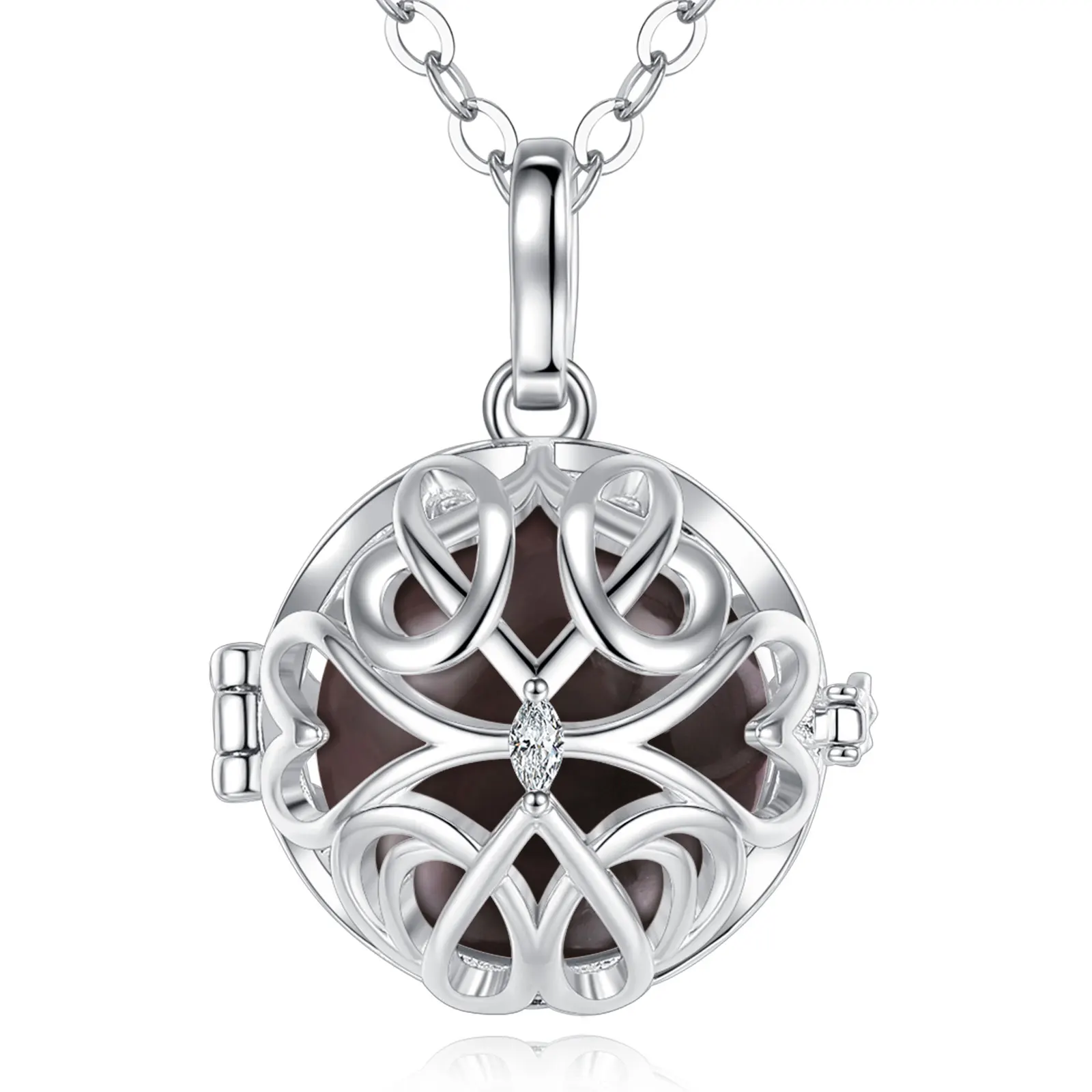 Notre bola à cage est un bijou unique et élégant, qui apportera une touche de douceur et de raffinement à votre tenue. Il est composé d’une cage en métal, qui s’ouvre en deux parties pour accueillir le bola. Chaque bola est fabriqué avec soin et émet un doux tintement apaisant, qui berce le bébé et favorise son développement sensoriel pendant la grossesse. Le bola à cage est disponible en plusieurs couleurs et matières, pour s’adapter à tous les goûts et tous les styles. Il est disponible avec une chaîne en argent de 114 cm