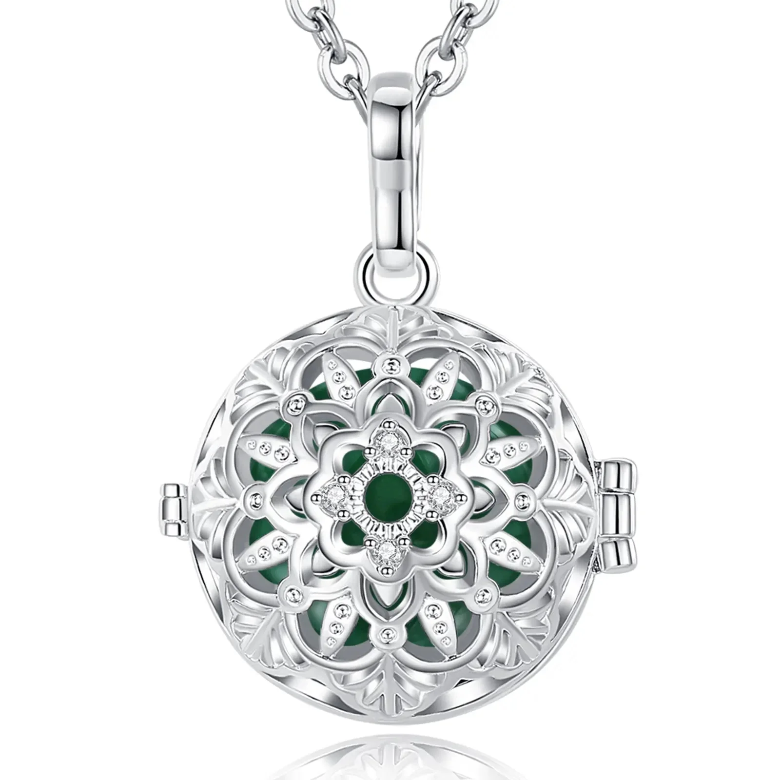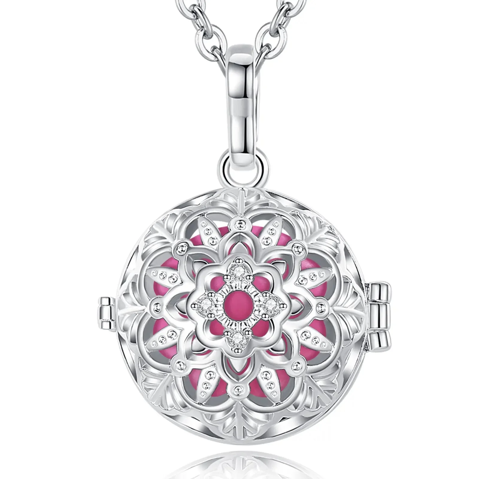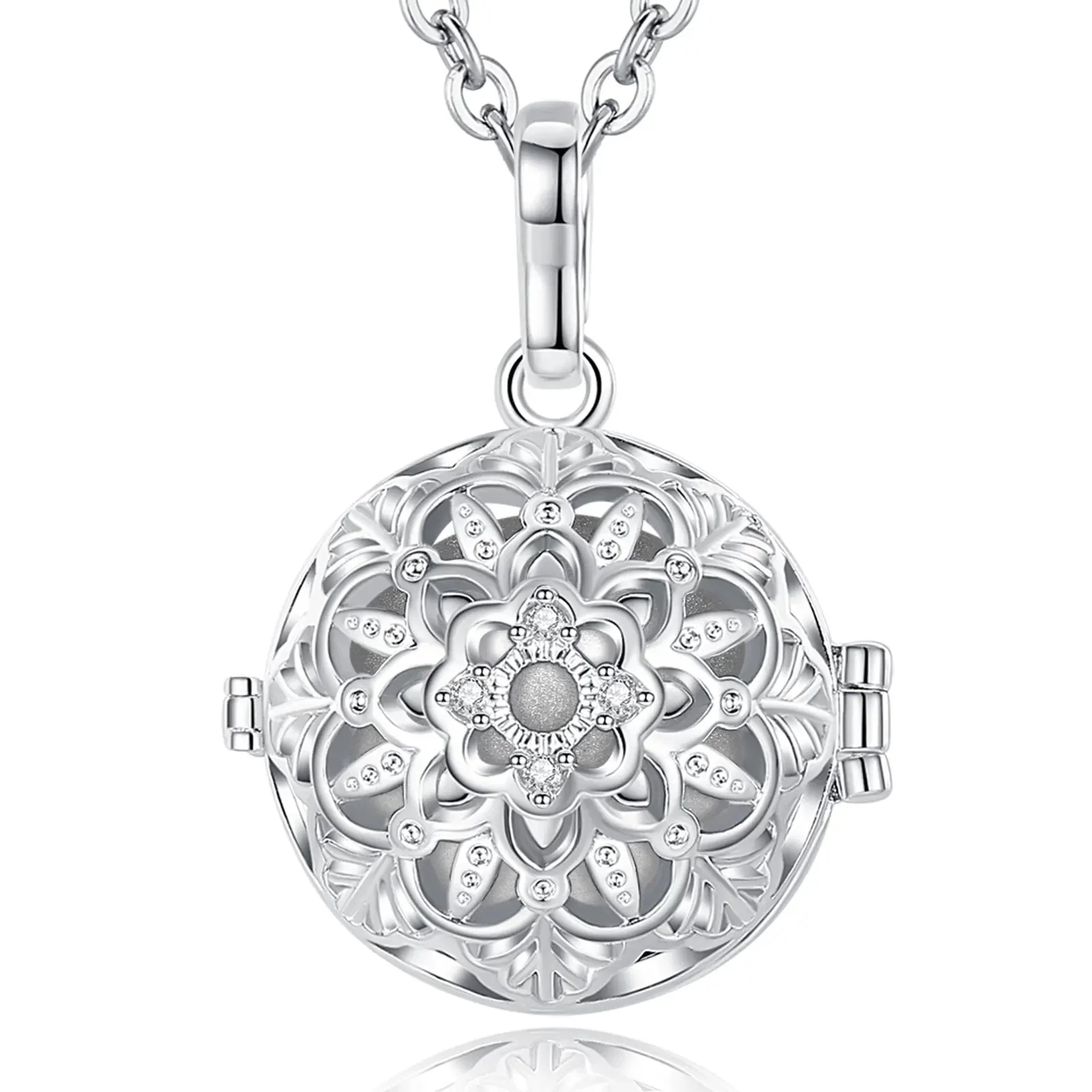 Notre bola à cage argent rond avec des pétales est un bijou unique et élégant, qui apportera une touche de douceur et de raffinement à votre tenue. Il est composé d’une cage sphérique en argent, qui s’ouvre en deux parties pour accueillir le bola. Chaque bola est fabriqué avec soin et émet un doux tintement apaisant, qui berce le bébé et favorise son développement sensoriel pendant la grossesse. Le bola à cage argent rond avec des pétales est orné de pétales en relief, pour une touche de féminité et de raffinement. Il a un diamètre de 18 mm et est disponible avec une chaîne en argent de 114 cm.