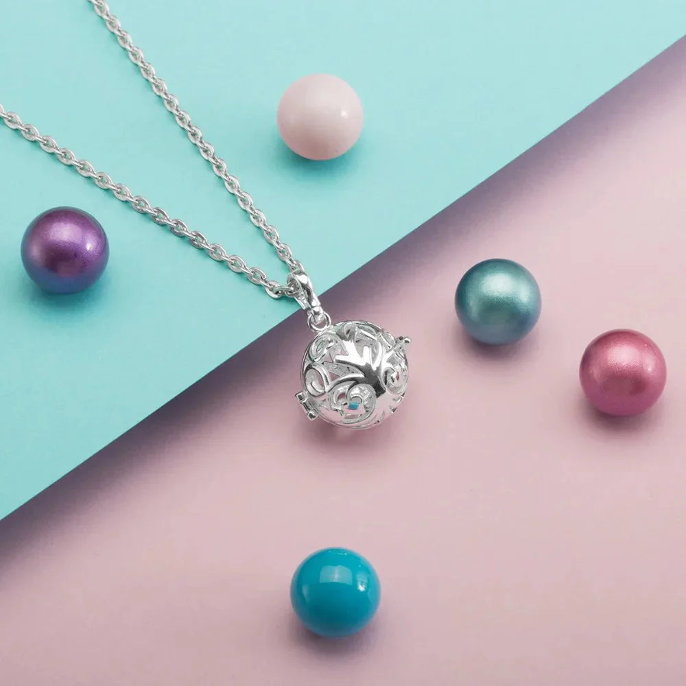 Notre bola à cage est un bijou unique et élégant, qui apportera une touche de douceur et de raffinement à votre tenue. Il est composé d’une cage en métal, qui s’ouvre en deux parties pour accueillir le bola. Chaque bola est fabriqué avec soin et émet un doux tintement apaisant, qui berce le bébé et favorise son développement sensoriel pendant la grossesse. Le bola à cage est disponible en plusieurs couleurs et matières, pour s’adapter à tous les goûts et tous les styles. Il est disponible avec une chaîne en argent de 114 cm