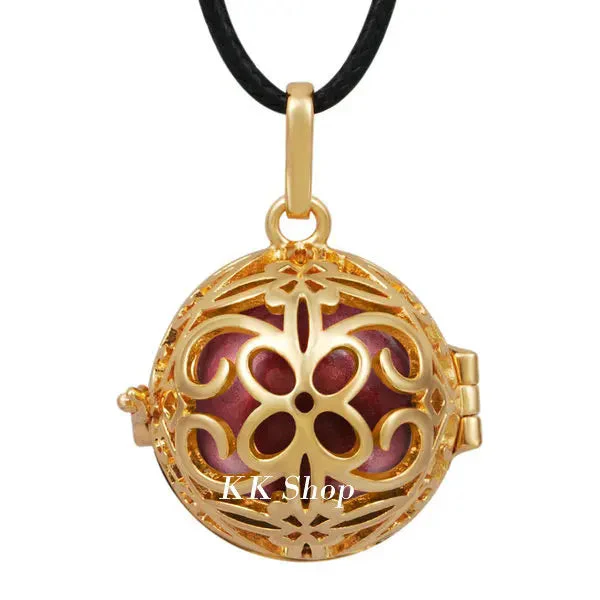 Notre bola à cage est un bijou unique et élégant, qui apportera une touche de douceur et de raffinement à votre tenue. Il est composé d’une cage en métal plaqué or, qui s’ouvre en deux parties pour accueillir le bola. Chaque bola est fabriqué avec soin et émet un doux tintement apaisant, qui berce le bébé et favorise son développement sensoriel pendant la grossesse. Le bola à cage est disponible en plusieurs couleurs et matières, pour s’adapter à tous les goûts et tous les styles. Il est disponible avec un collier en cuir de 114 cm.