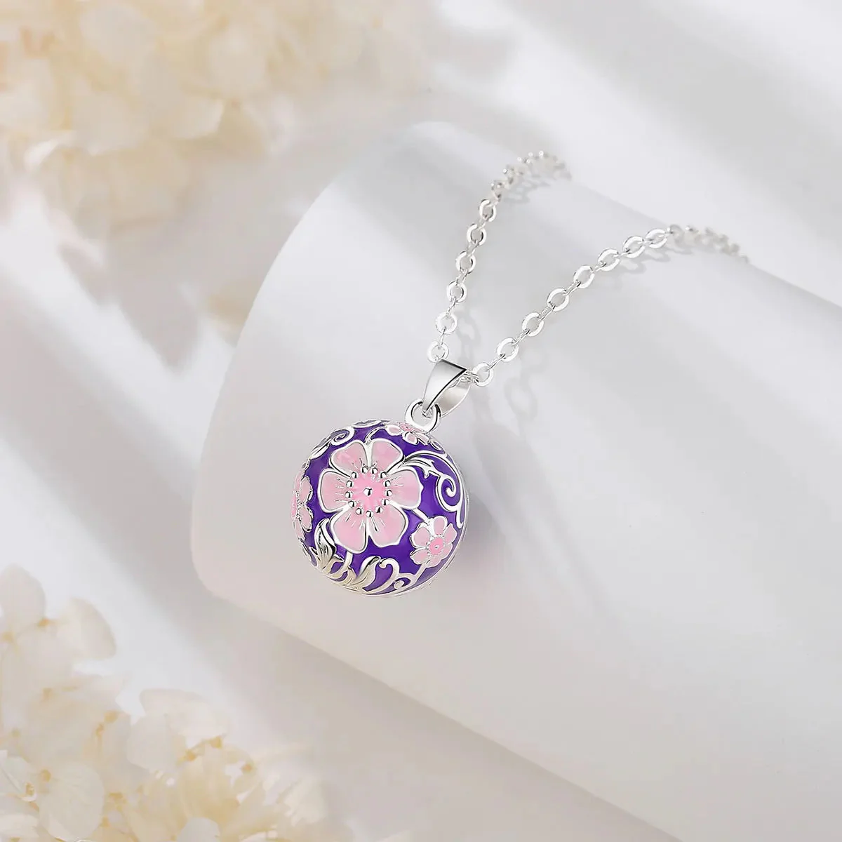 Notre bola avec un soleil de fleur rose au centre est un bijou unique et élégant, qui apportera une touche de douceur et de raffinement à votre tenue. Chaque bola est fabriqué avec soin et émet un doux tintement apaisant, qui berce le bébé et favorise son développement sensoriel pendant la grossesse. Le bola est disponible avec une chaîne en argent de 76 ou 114 cm ou collier cuir de 114cm pour s’adapter à toutes les morphologies.