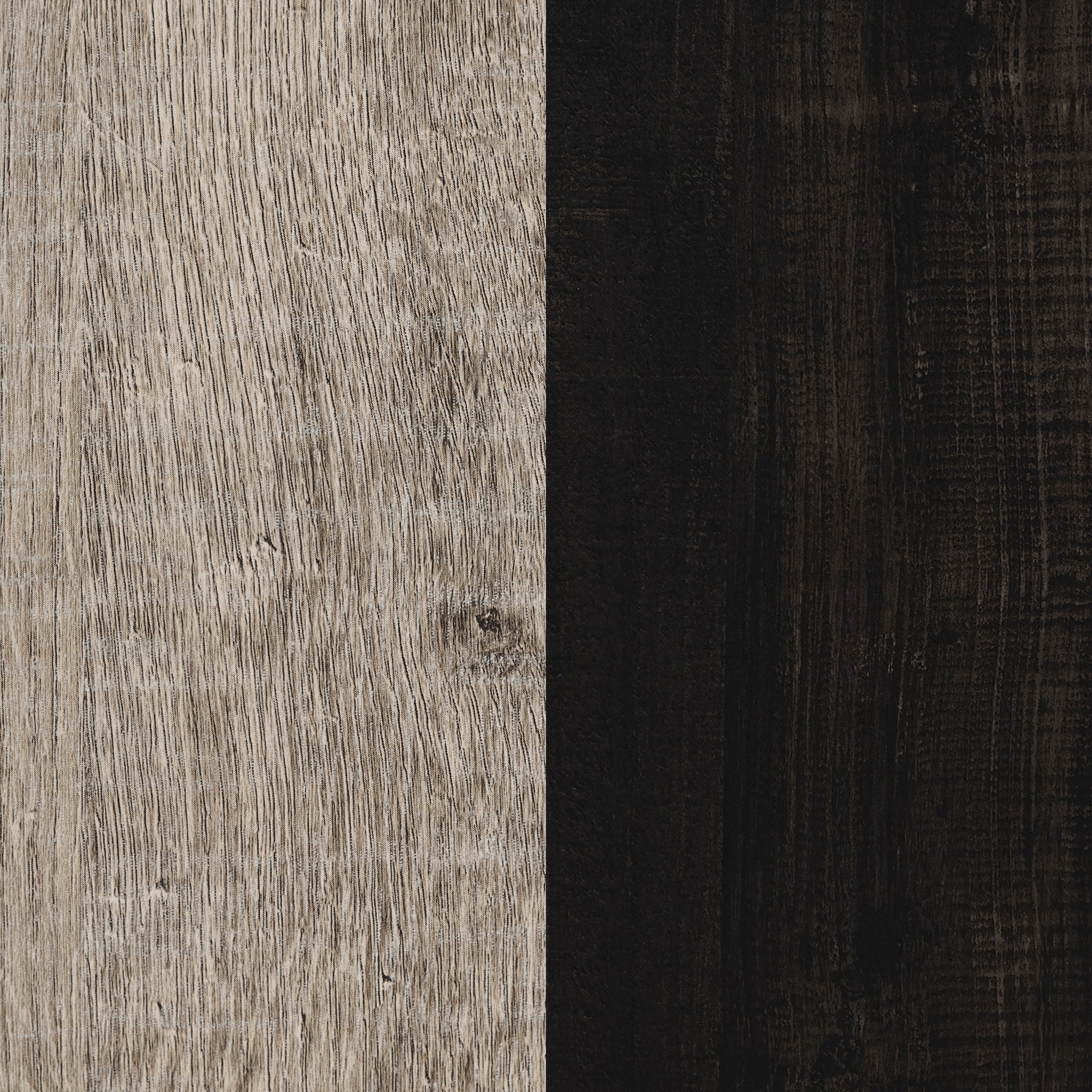 Bureau double 6 tiroirs Londen – Noir antiqué et Chêne vieilli