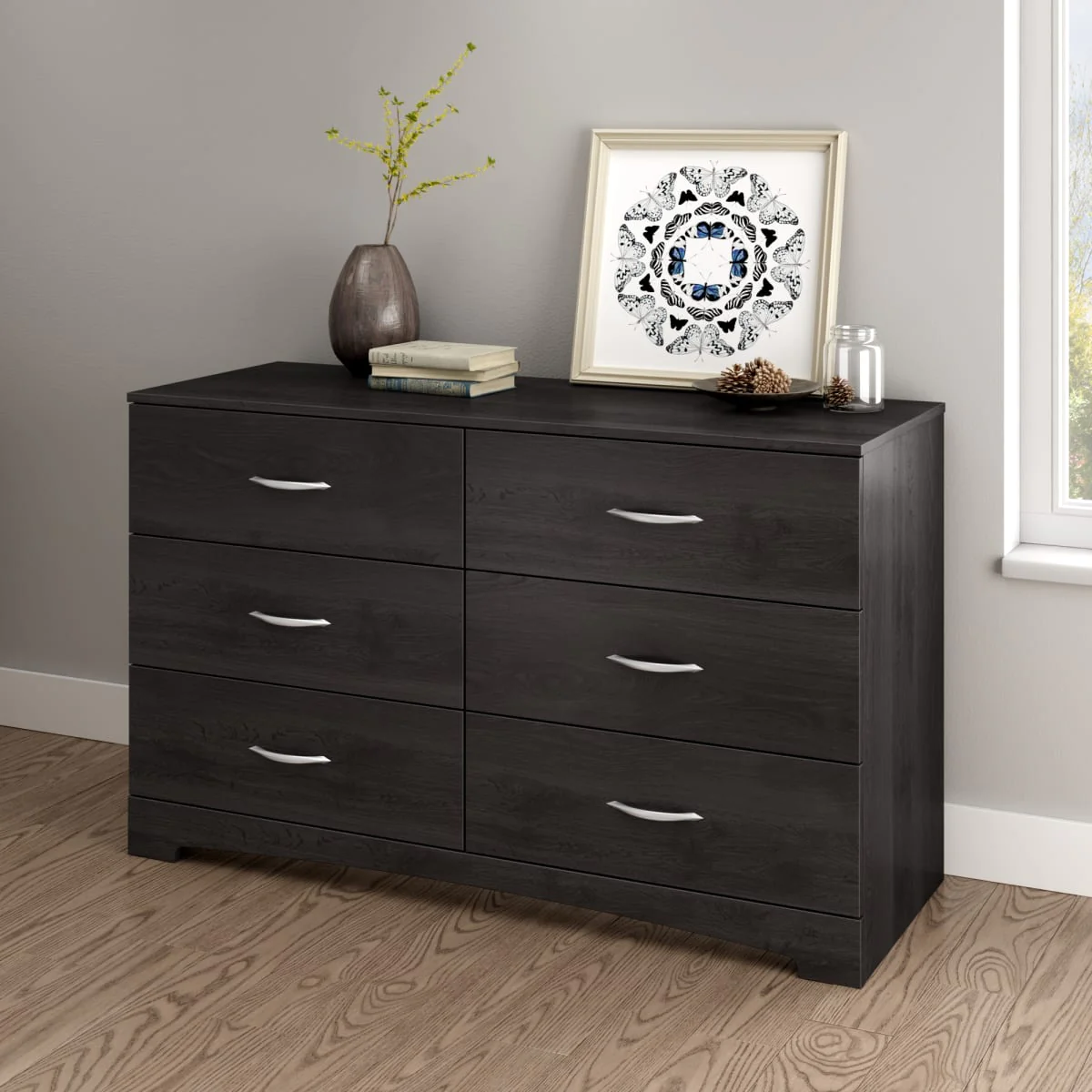 Cette collection de mobilier pour la chambre à coucher a été pensée pour les petits espaces! Cette commode a 6 tiroirs pratiques équipés de poignées en métal et vous offre juste assez de place pour tous vos vêtements et votre literie. Les coulisses des tiroirs sont faites en métal, pour un accès facile et rapide.