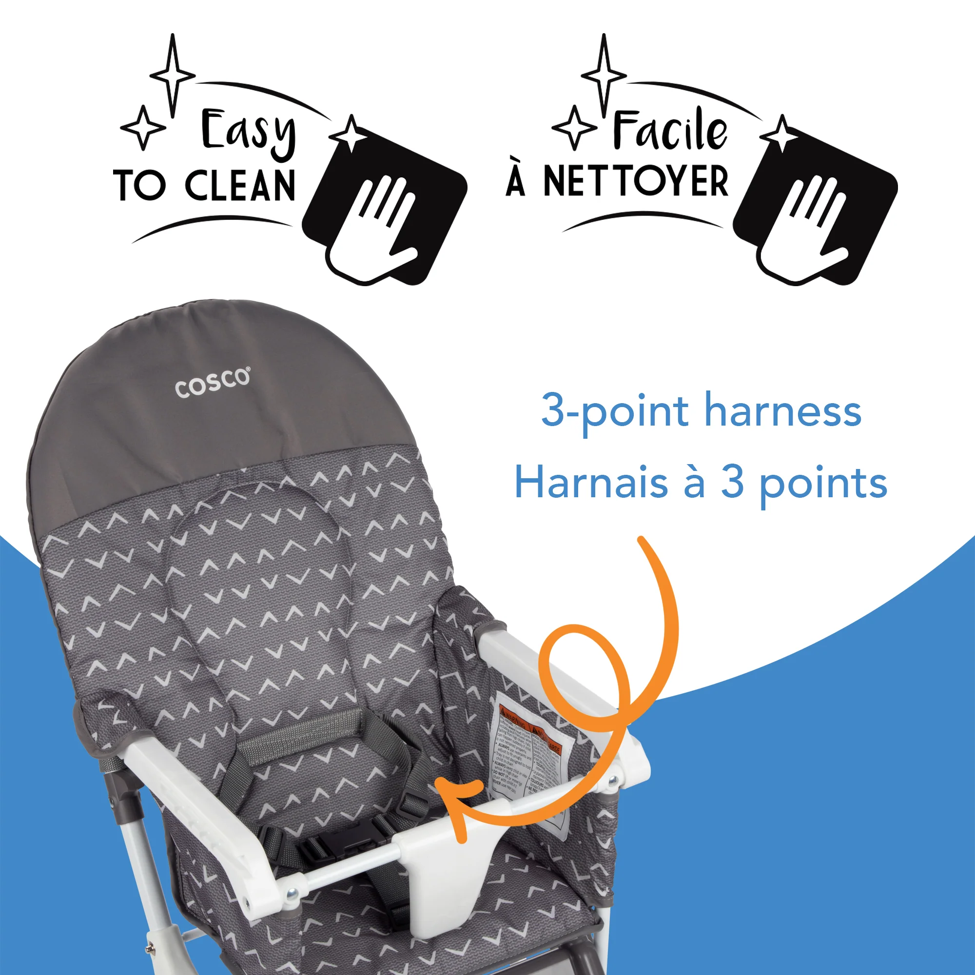 - Pour une utilisation jusqu’à 22,7 kg, le harnais à 3 points maintient votre bébé en sécurité ainsi que votre tout-petit en pleine croissance.