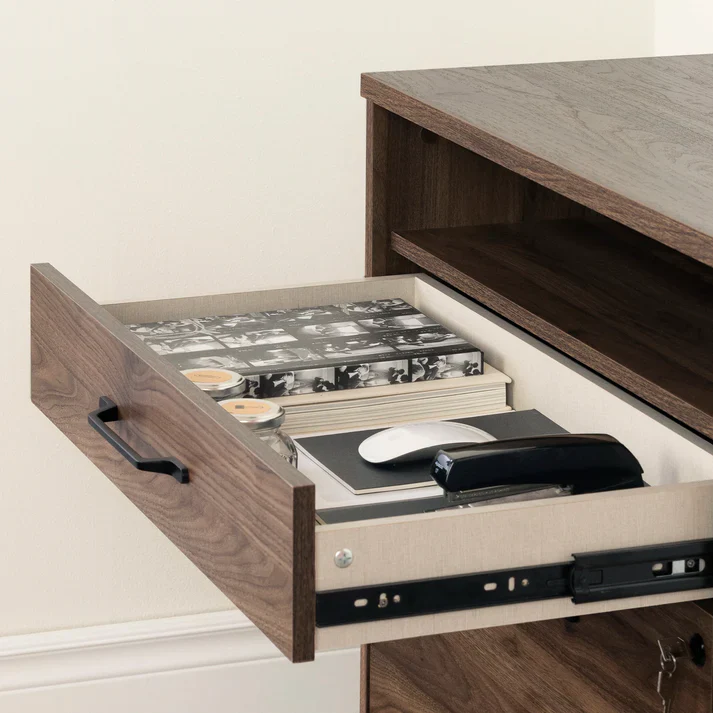 • TIROIR CLASSEUR : rangez vos documents confidentiels et vos fiches 8½”x11” ou 8½”x14” dans le grand tiroir classeur du bas sur coulisses pleines extension sachant qu’ils seront en sureté, étant donné qu’il se verrouille à clé.