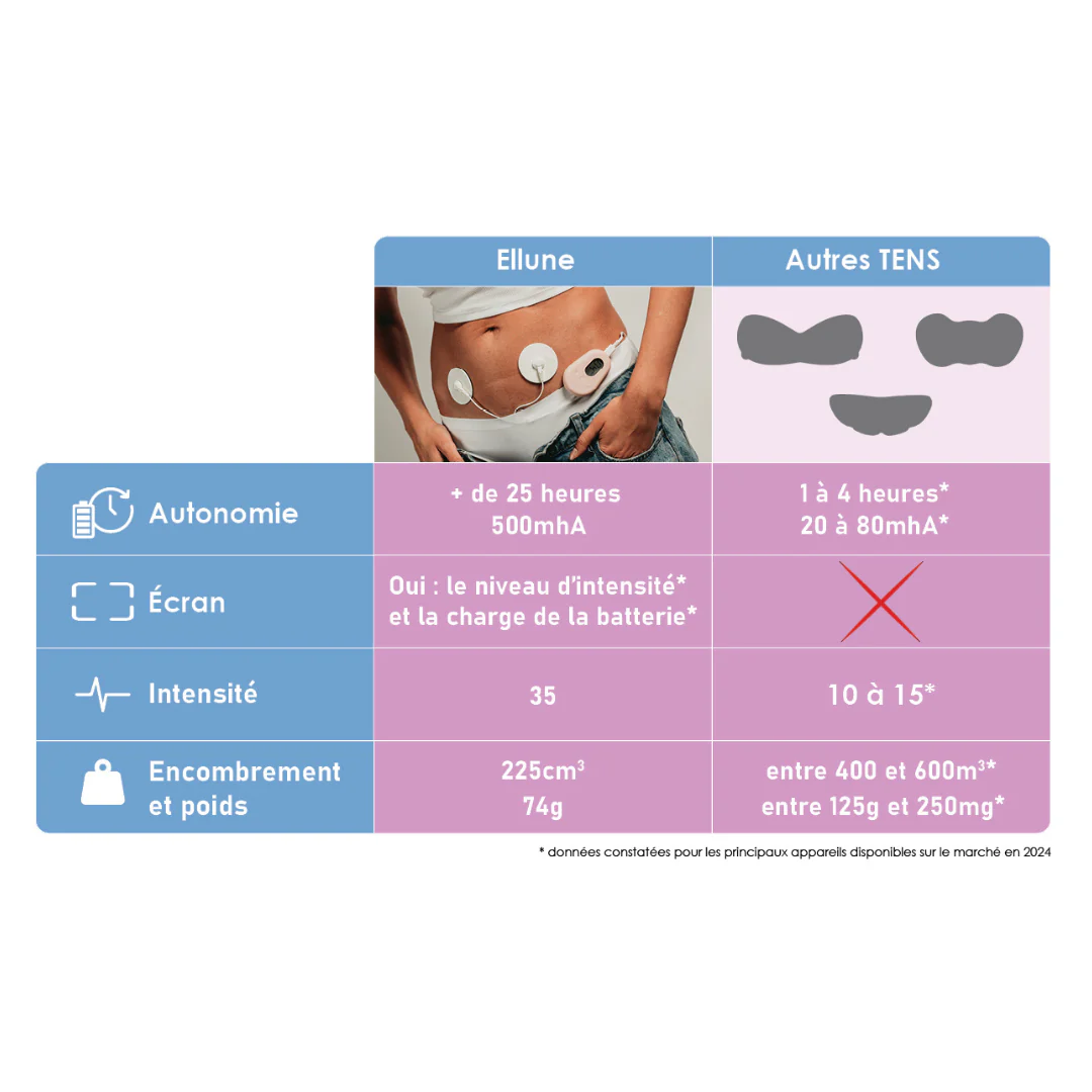 Cliniquement prouvé, Ellune offre un soulagement immédiat et durable, sans recours aux médicaments, sans effets secondaires, et avec une autonomie record de 25 heures.