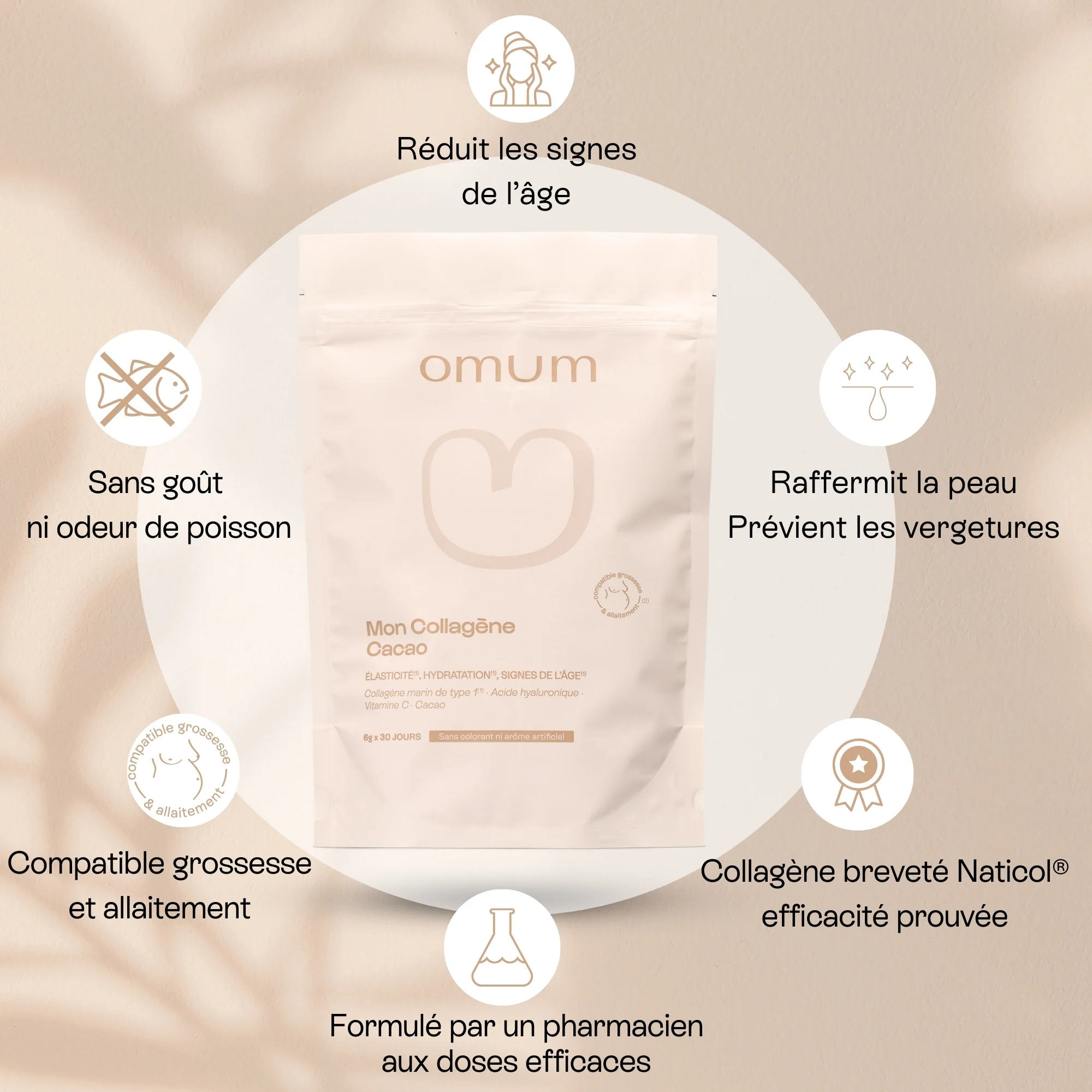 Et si votre chocolat chaud vous offrait aussi une peau plus ferme ? Avec Mon Collagène Cacao d’Omum, faites du bien à votre peau tout en vous régalant :* raffermit et améliore l’élasticité* hydrate en profondeur* booste la production naturelle de collagène