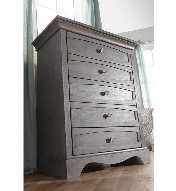 La commode à 5 tiroirs Ragusa offre un espace suffisant pour ranger tout, des vêtements aux trésors précieux. Elle offre suffisamment d’espace pour ranger tout, des grandes couvertures aux petits chaussons et aux précieuses grenouillères. Les tiroirs sont dotés de glissières à fermeture douce pour plus de facilité et de sécurité, et la commode est dotée de finitions non toxiques.