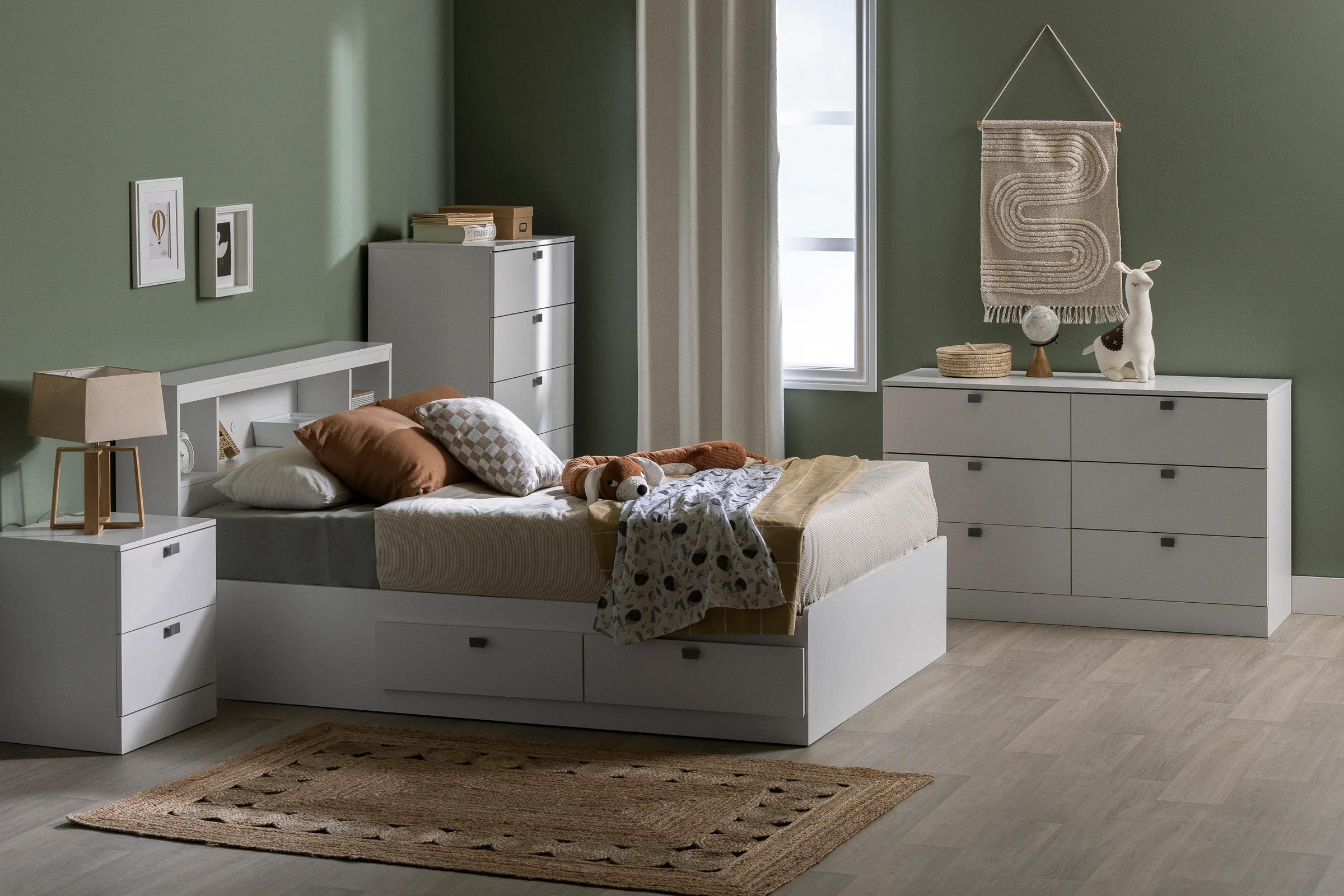 Dans les 5 spacieux tiroirs sur coulisses en métal, organisez efficacement les pyjamas, pantalons, t-shirts et vêtements hors saison de votre trésor. Grâce à leurs poignées carrées en métal, leur ouverture est simple pour les petits comme les grands!