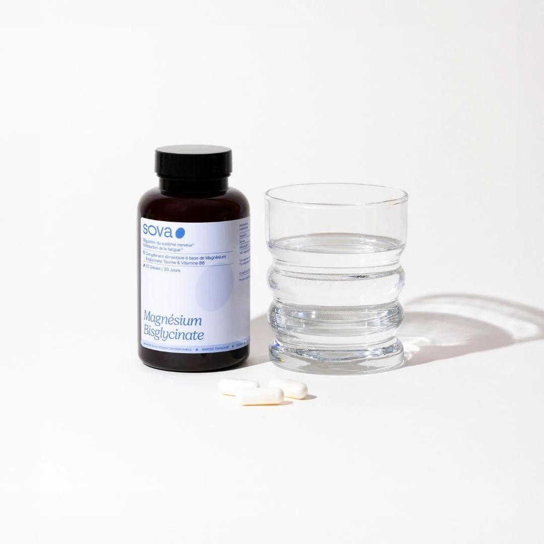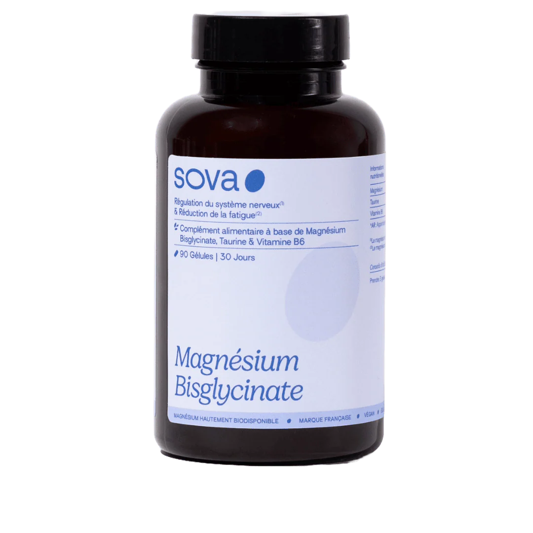 Magnésium bisglycinate hautement assimilable, enrichi en taurine et vitamine B6, pour réduire la fatigue, apaiser le stress, soutenir le sommeil et les fonctions nerveuses.