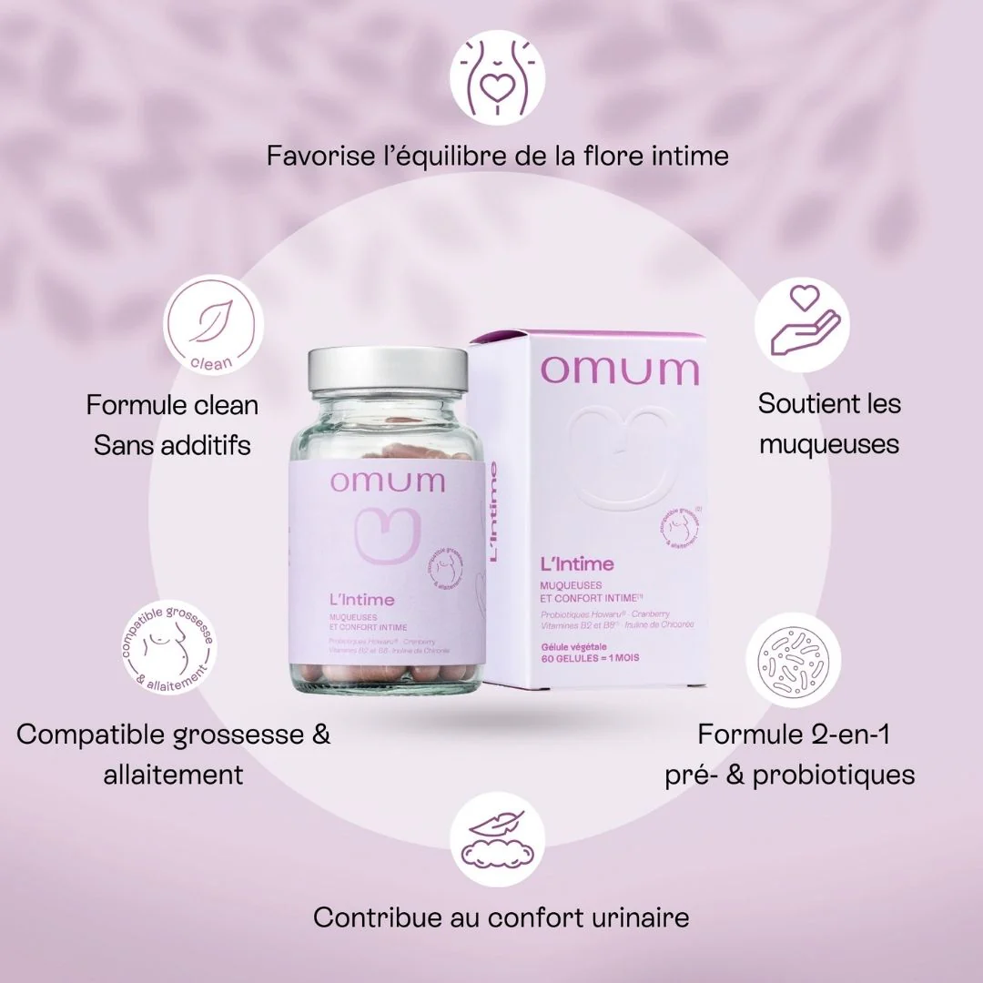 Avec Probiotiques flore intime – Omum, prenez soin de votre équilibre intime et urinaire avec une formule clean :
