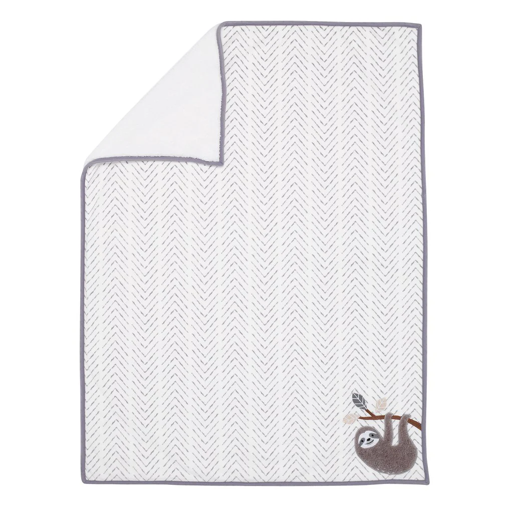 Blottissez votre tout-petit avec cette luxueuse couverture à motif chevron gris sur minky blanc. Le dos de la couverture est un sherpa blanc doux. Notre sympathique paresseux nommé Speedy est présenté dans le coin droit et est fait d’une fausse fourrure grise douce. La couverture mesure 76,2 x 101,6 cm et est la taille parfaite pour une couverture de poussette, aller au parc et faire des courses. C’est aussi un excellent cadeau de naissance.