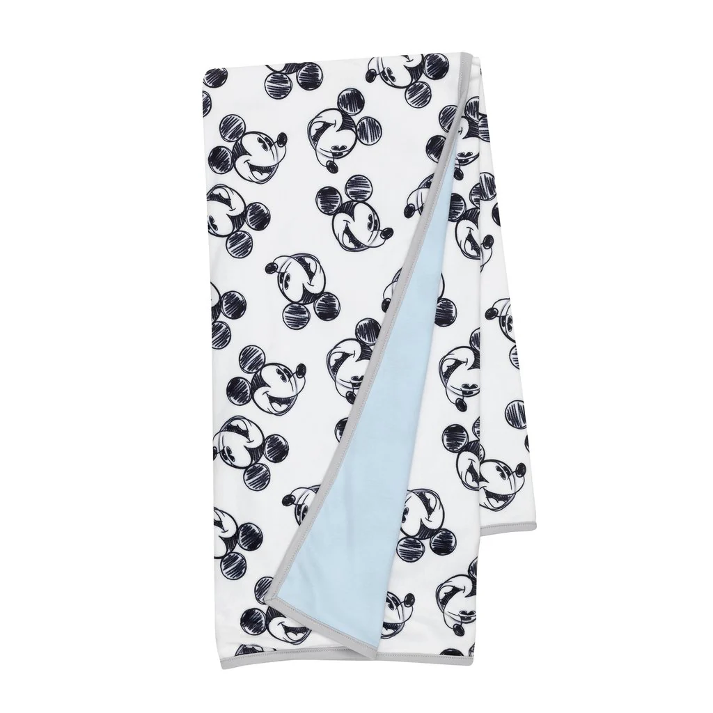 La souris préférée de tout le monde, Mickey, décore cette couverture minky de style dessin de personnage. Le dos est un jersey bleu en coton mélangé, avec une reliure grise unie. Cette amusante couverture à emporter est lavable en machine pour un entretien facile. Il est doux et douillet et gardera votre tout-petit au chaud et confortable.