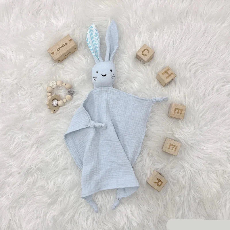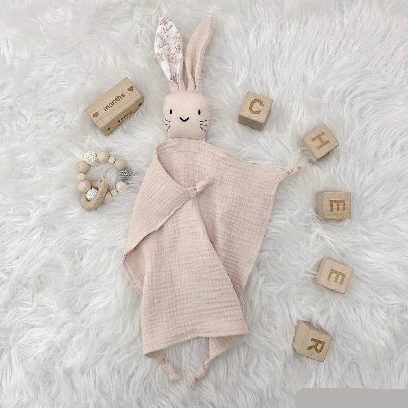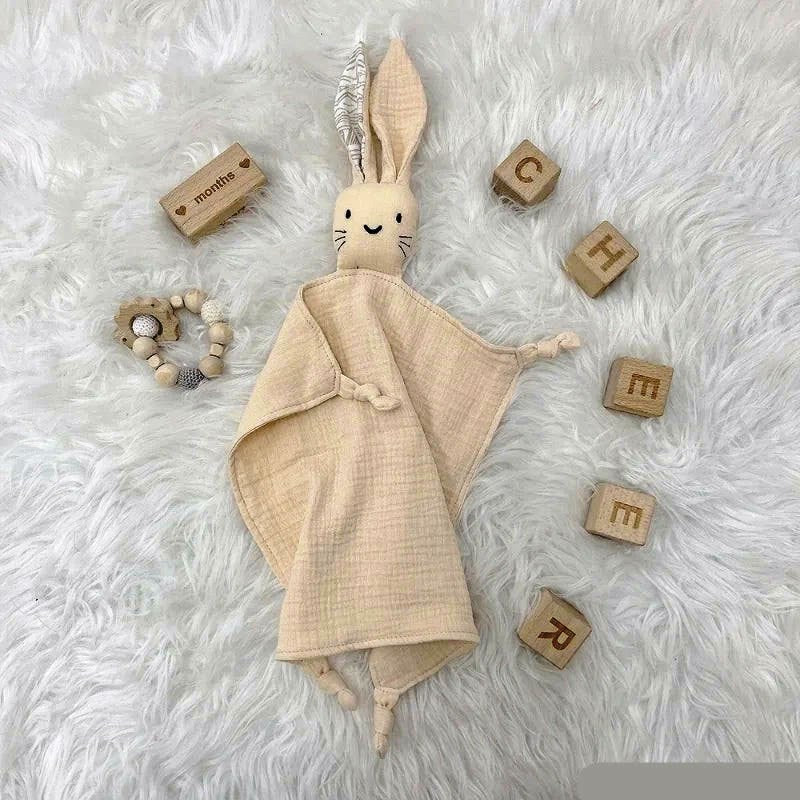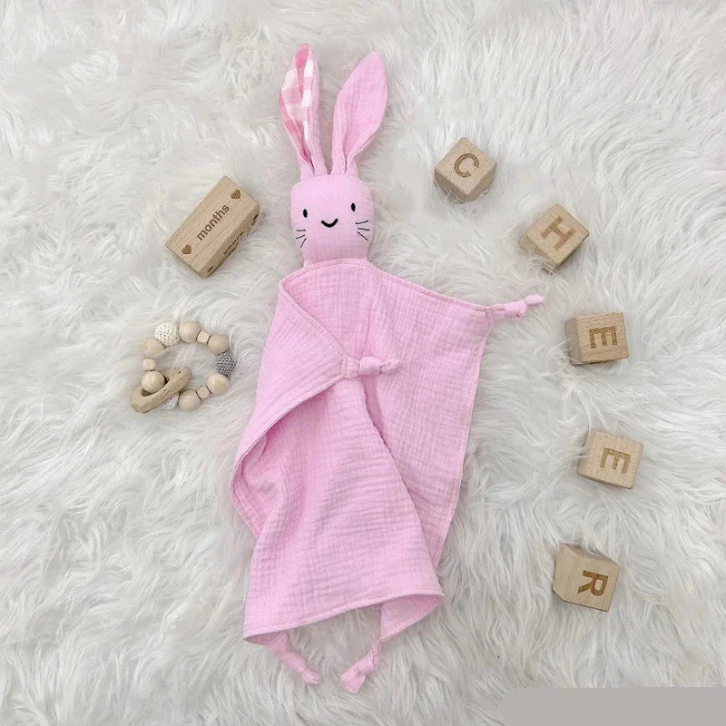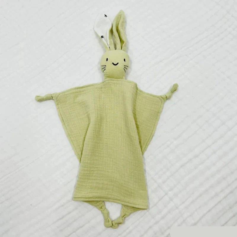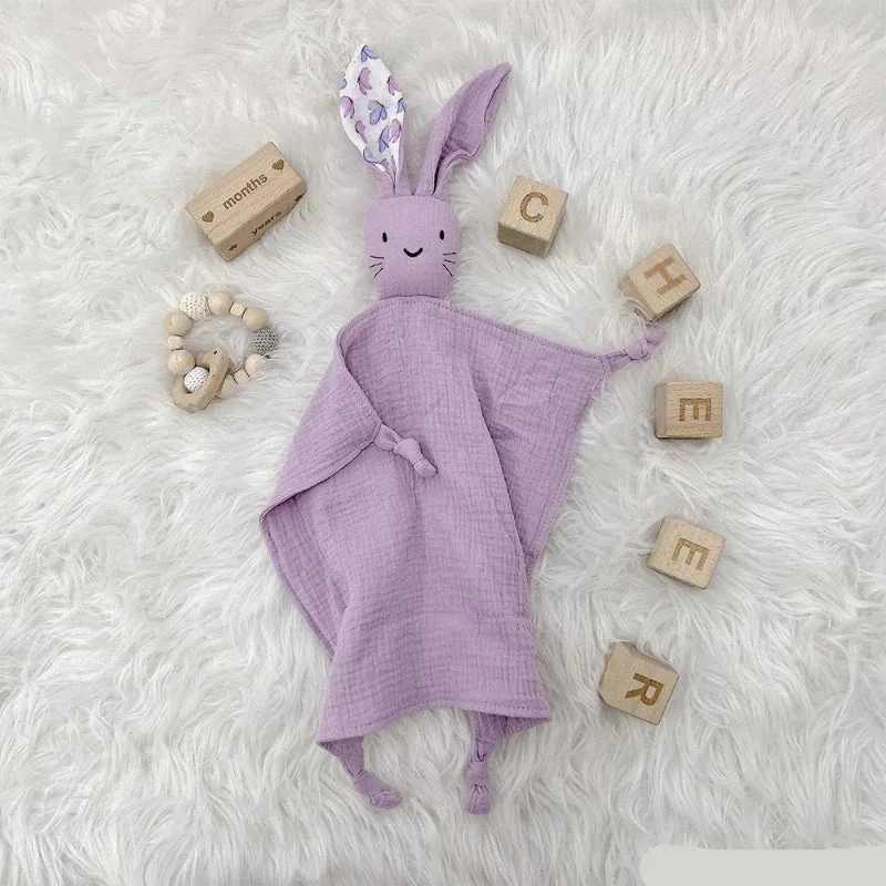 Nos doudous carrés avec une tête de lapin sont fabriqués à partir de coton doux et confortable, pour offrir un toucher agréable et réconfortant à votre bébé. Ils sont rembourrés pour offrir une sensation de sécurité et de bien-être à votre enfant.