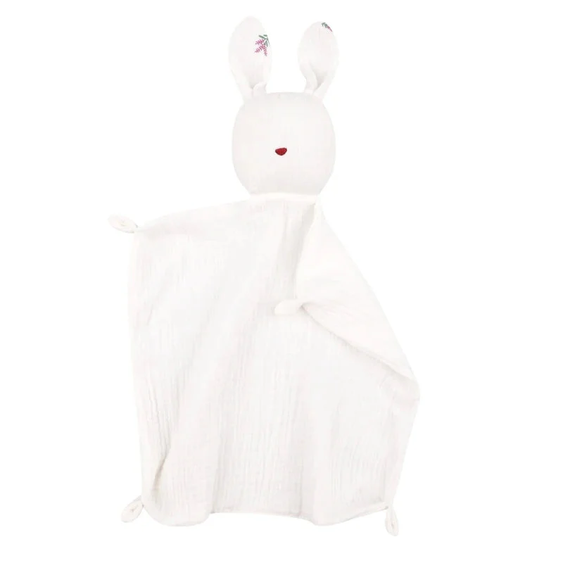 Nos doudous carrés avec une tête de lapin sont fabriqués à partir de coton doux et confortable, pour offrir un toucher agréable et réconfortant à votre bébé. Ils sont rembourrés pour offrir une sensation de sécurité et de bien-être à votre enfant.