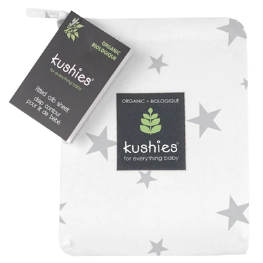 Les draps pour lit de bébé Kushies Organic sont en jersey de coton biologique certifié à 100%.