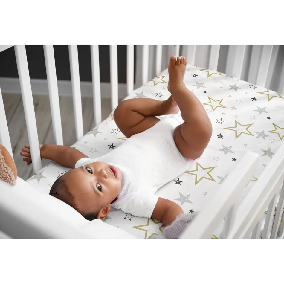 Drap contour pour lit de bébé percale – Étoile Or