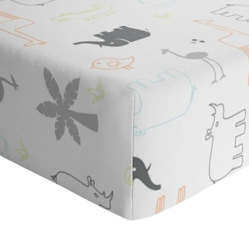 Drap contour pour lit de bébé percale – Jungle