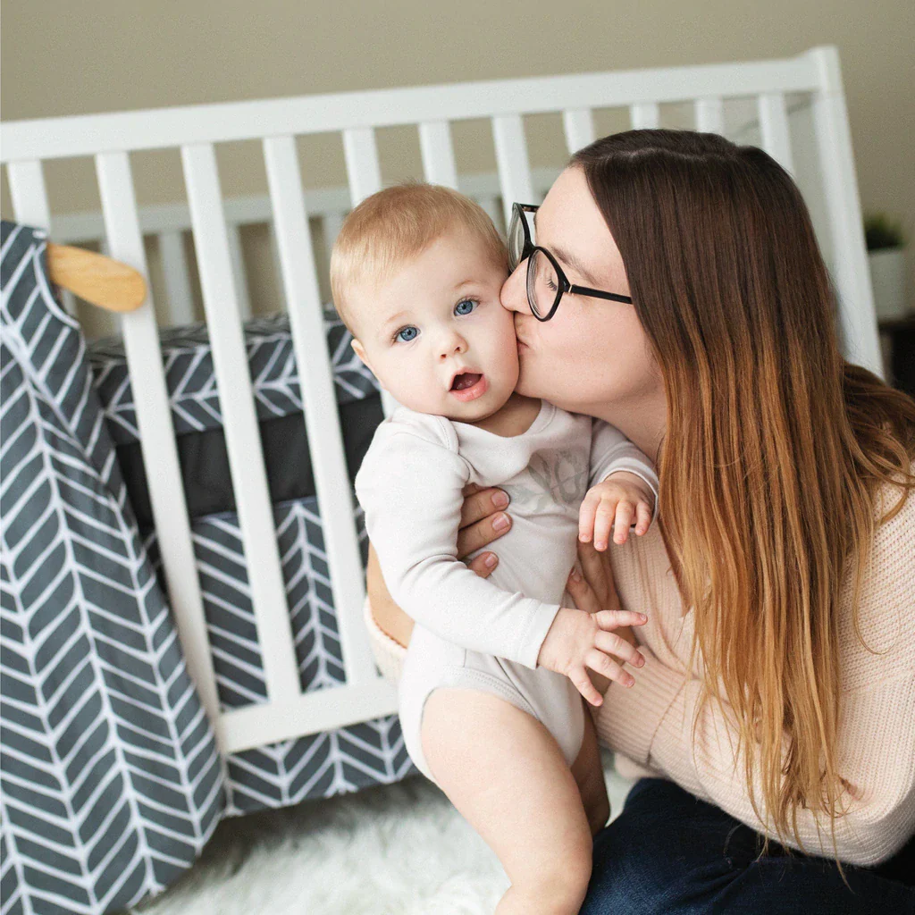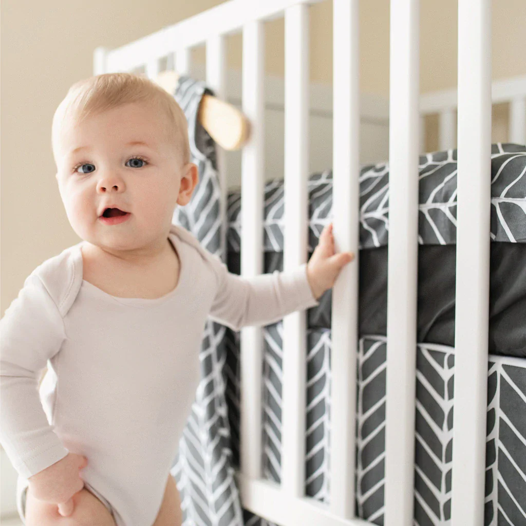 Réf. : PE L2200-4 CH Fabricant : PerlimpinpinDécorez la chambre de bébé de superbe façon avec cette literie 4 morceaux ! Possédant un look graphique bien affirmé, l’ensemble de lit dégage un air de fête avec ses nombreux motifs géométriques. Fait à la main au Canada Ensemble 4 morceaux comprenant une couette, une housse de […]