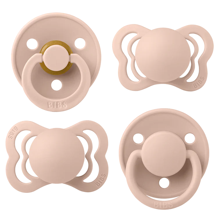 Il est important d’essayer différentes formes et tailles pour trouver celle qui convient le mieux à votre bébé. C’est pourquoi Bibs a lancé la collection BIBS Try-it. Dans la collection, vous obtenez une suce dess 4 catégories différentes avec une sélection de tous nos types de tétines (rondes, symétriques et anatomiques) et matériaux (latex de caoutchouc naturel et silicone).