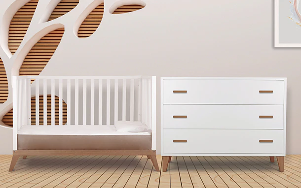 Ensemble bassinette classique Donatello et meuble 3 tiroirs Caravaggio – Blanc et noyer