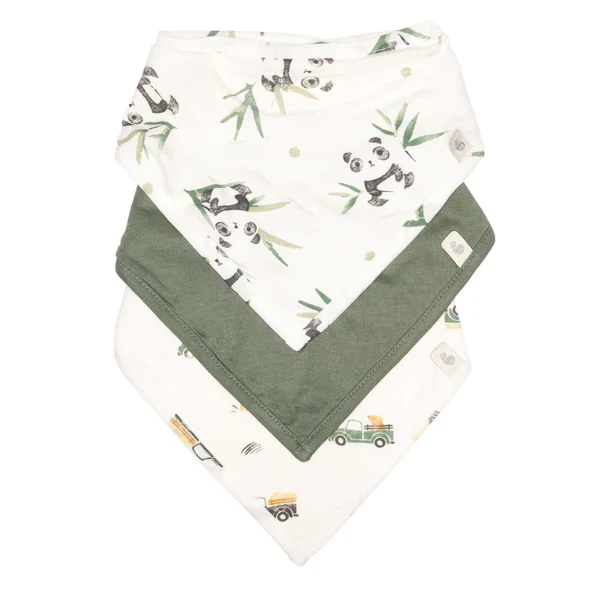 Ensemble de 3 bavoirs en bambou – Pandas, Vert et Prairies