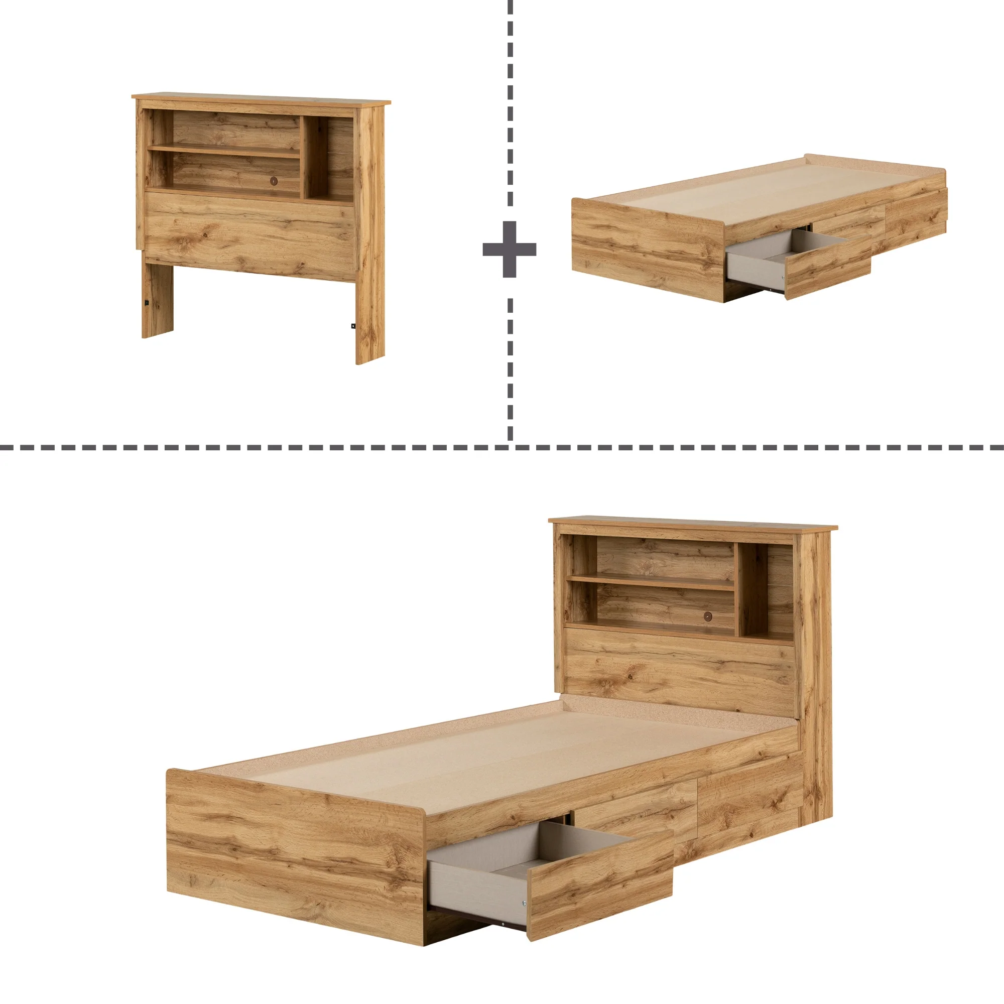Ensemble lit matelot et tête de lit bibliothèque simple 39″ Tassio-Chêne nordique