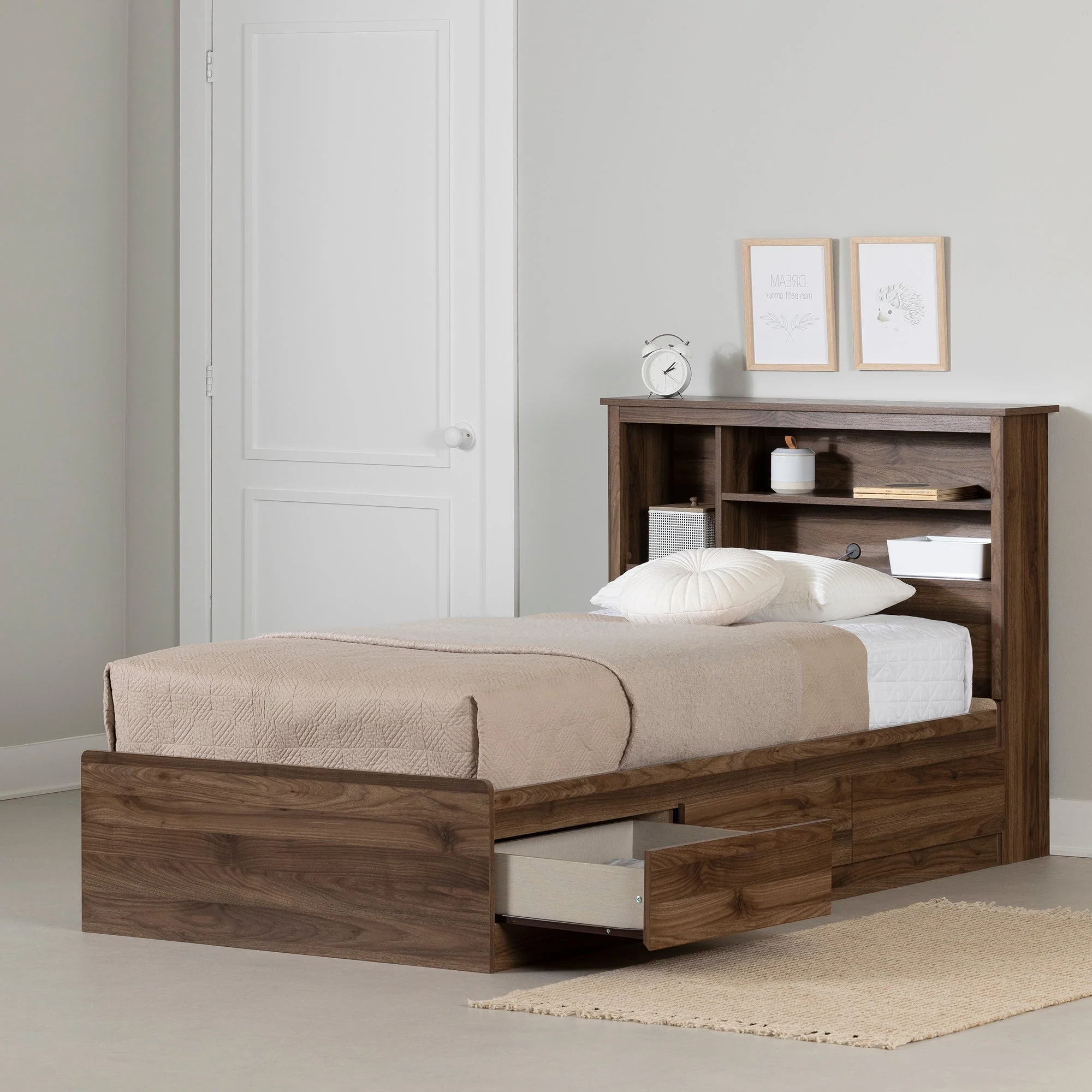 Ensemble lit matelot et tête de lit bibliothèque simple 39″ Yodi -Noyer naturel