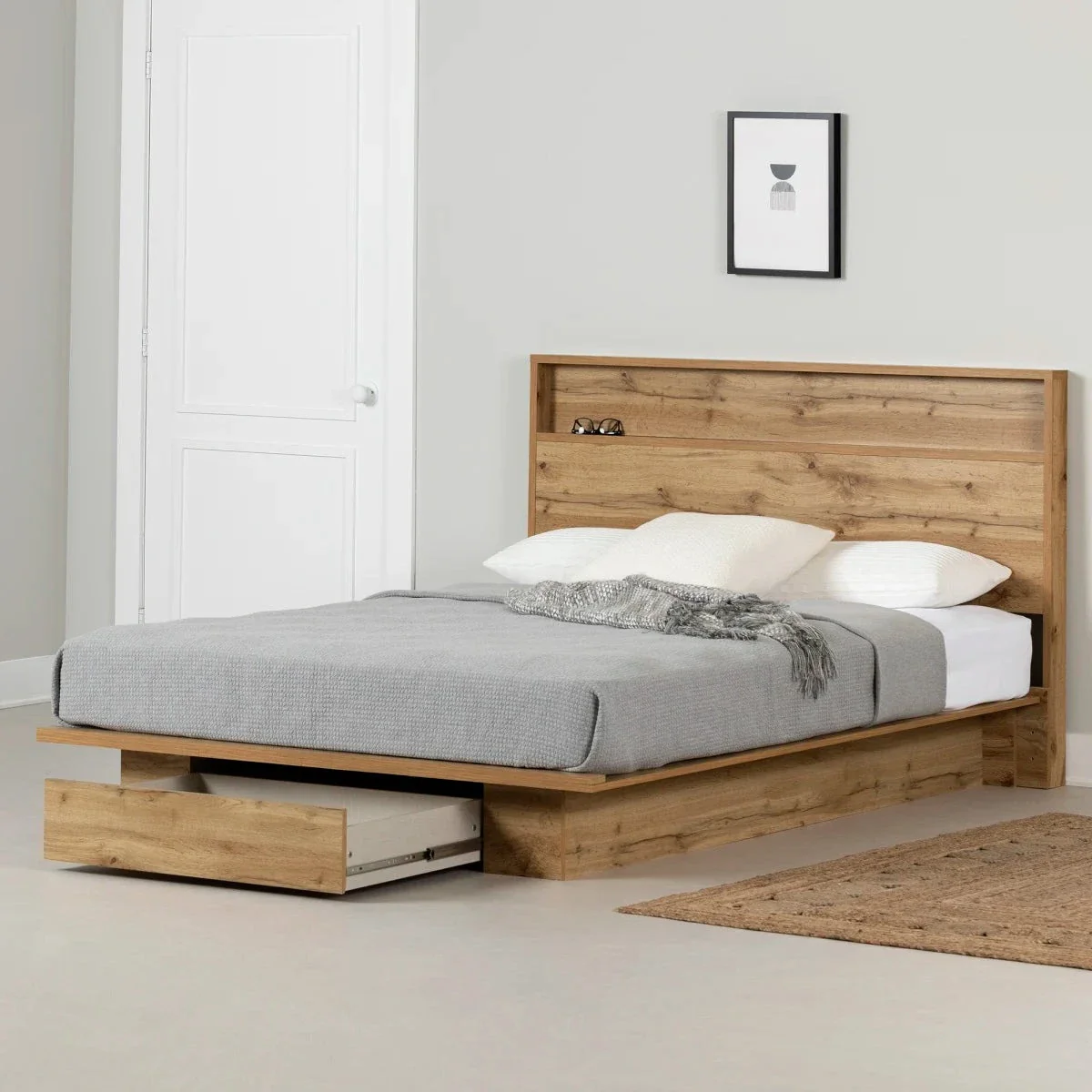 Ensemble lit plateforme et tête de lit double/queen 54″/60″ Musano – Chêne nordique