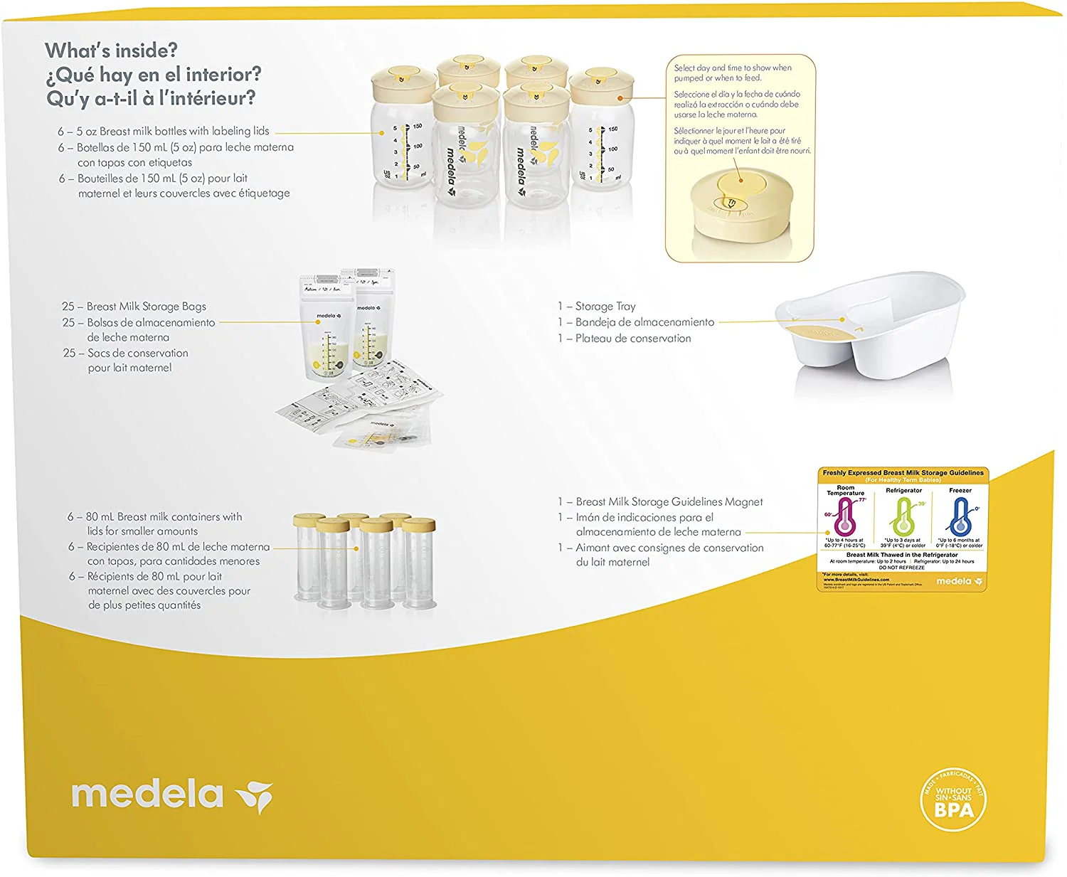 Le Breast Milk Storage Solution™ est le complément parfait à tout tire-lait Medela. Le système complet vous permet de stocker, d’organiser et de protéger en toute sécurité votre lait maternel tout au long de votre allaitement. Les biberons pour lait maternel, les couvercles d’étiquetage et les sachets de lait maternel Pump & Save™ sont compatibles avec tous les tire-lait Medela et idéaux pour un stockage à court ou à long terme. Les récipients supplémentaires sont également parfaits pour le pompage pour une conservation rapide et facile du lait maternel.
