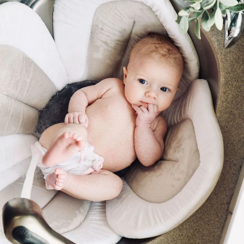 Pourquoi voudrait-on baigner leur bébé dans une baignoire en plastique dur alors qu’ils pourraient entourer leur petit dans la douceur câlin d’une adorable fleur en peluche?