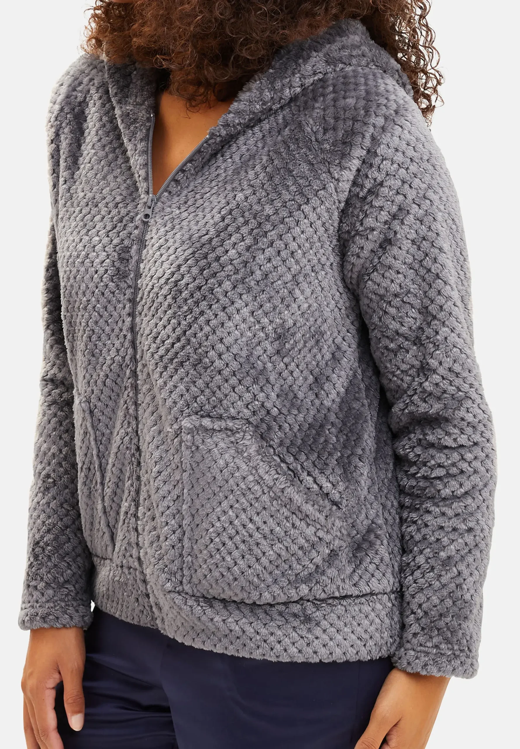 Craquez pour ce gilet en polaire Hug au style décontracté et facile à porter en intérieur comme en extérieur. • Gilet à capuche• Manches longues• Polaire toute douce• Effet nid d’abeille• Fermeture éclair• Poches latérales• Parfait sur un pyjama ou une tenue du jour Notre mannequin porte le modèle en taille M. CORRESPONDANCE DES TAILLESM […]
