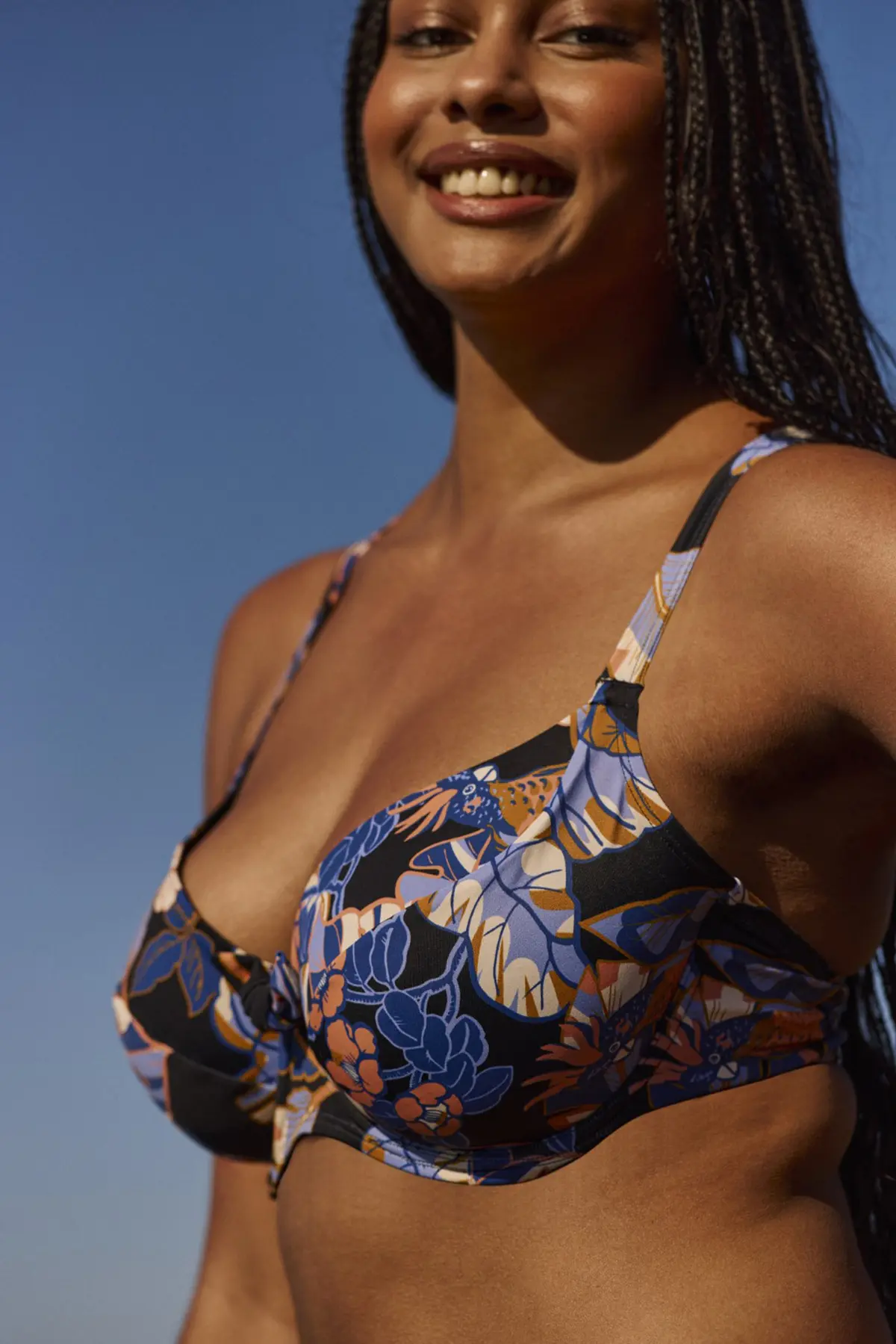 Haut de maillot de bain avec armatures Fidji Imprimé Exotique Noir