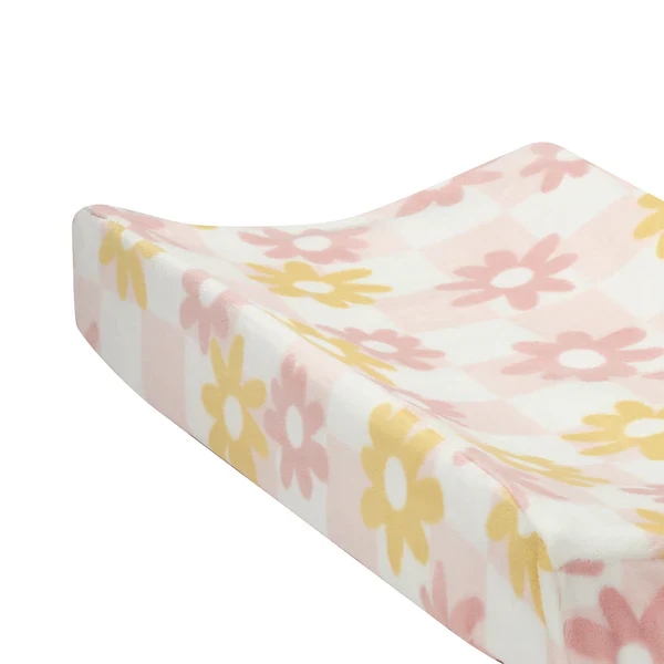 Cette luxueuse housse de matelas à langer en molleton ultra-doux est parfaite pour garder votre tout-petit au chaud et confortable pendant les changements de couches. Il se trouve sur un fond en damier rose et blanc pétale avec une jolie couleur rose et des marguerites jaunes hâlées. Il y a des boutonnières pour les bretelles du matelas à langer, afin que votre tout-petit soit en sécurité pendant qu’il change sa couche. L’élastique sur les côtés courts offre un ajustement sûr. Il est lavable en machine pour un entretien facile.