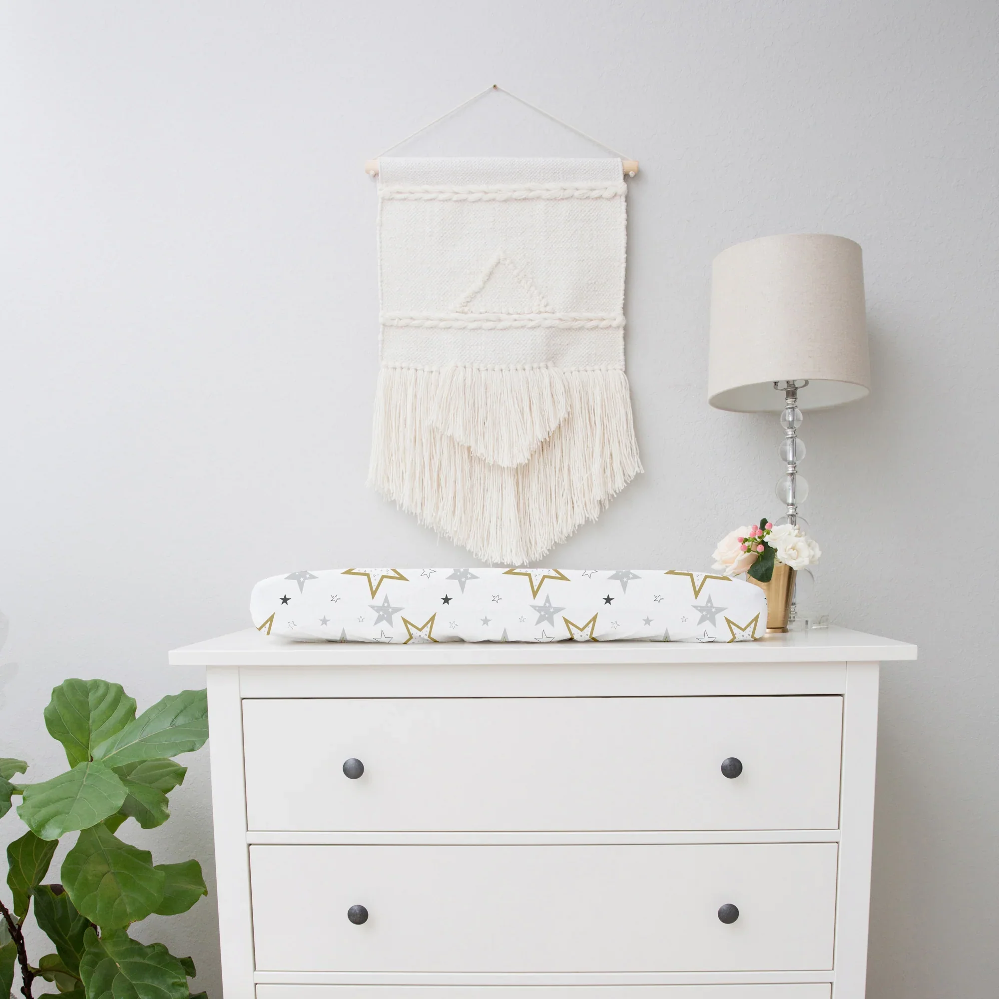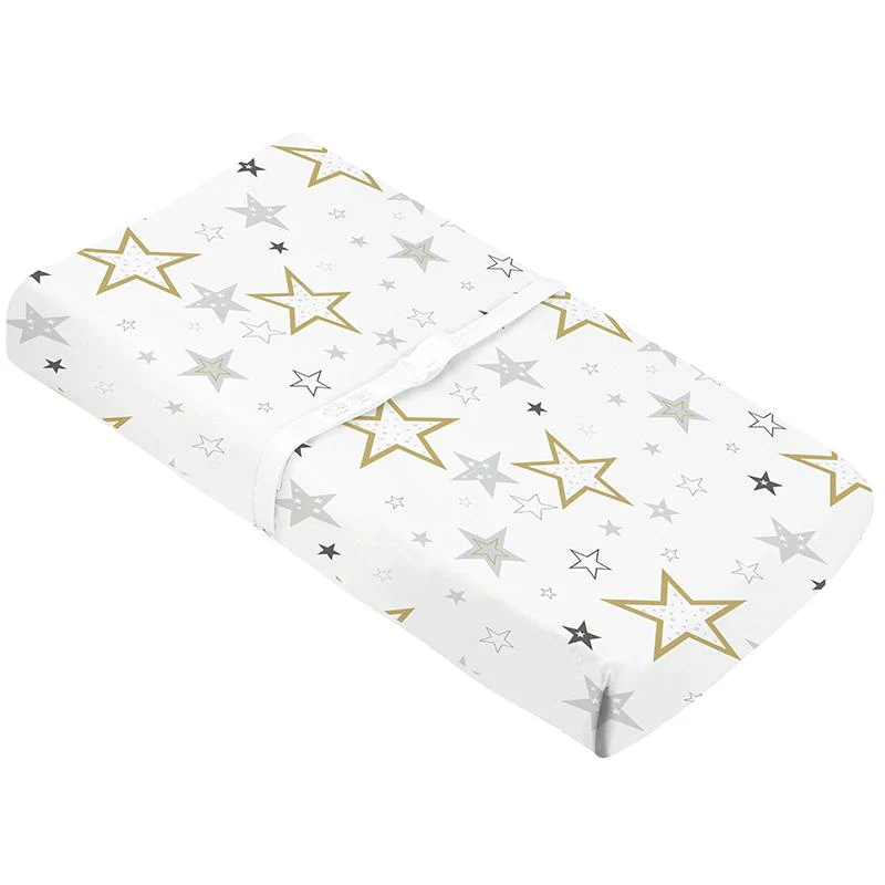 Housse pour matelas à langer percale avec ouverture pour sangles – Étoile Or
