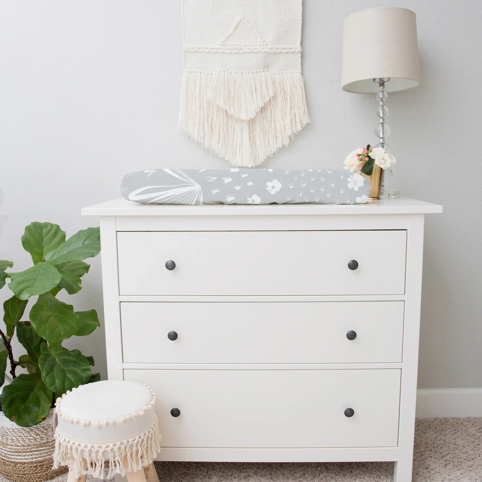 Découvrez notre housse de matelas à langer profilée ultra douce qui est douce pour la peau de bébé et rend le change plus pratique !