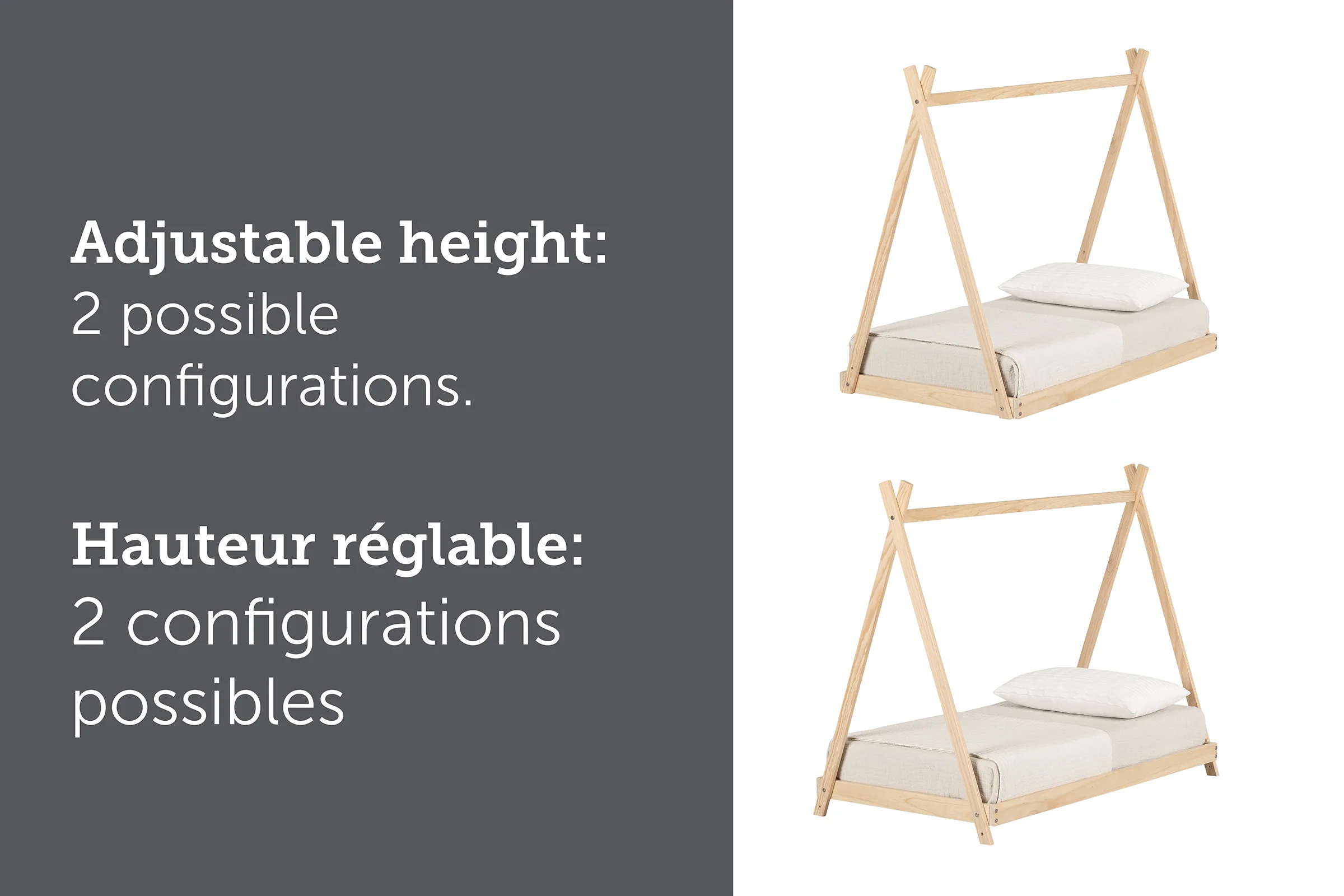 Cette fabuleuse base de lit de style scandinave sera magnifique dans la chambre de votre enfant. Son design minimaliste et ludique créera un décor tendance à coup sûr! Combinez-la avec une literie douillette, un tapis original et des lumières douces pour créer une ambiance invitante propice au sommeil. Ce sera un coup de cœur pour toute la famille!
