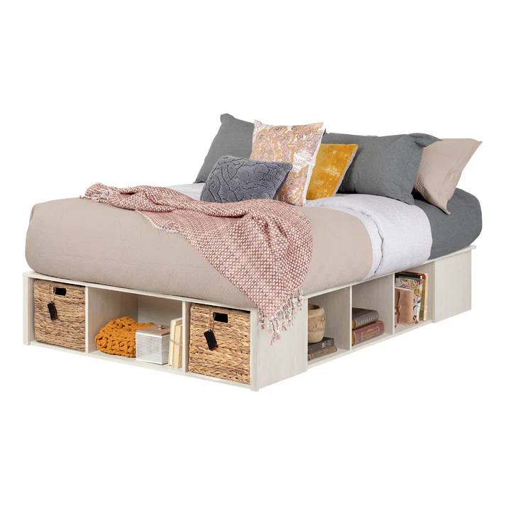 Ce lit avec plusieurs espaces de rangement est inusité et ingénieux! Il offre plusieurs casiers ouverts sur 3 côtés du lit. L’espace sous le lit estvaste: vous pouvez y serrer des livres, draps et accessoires.